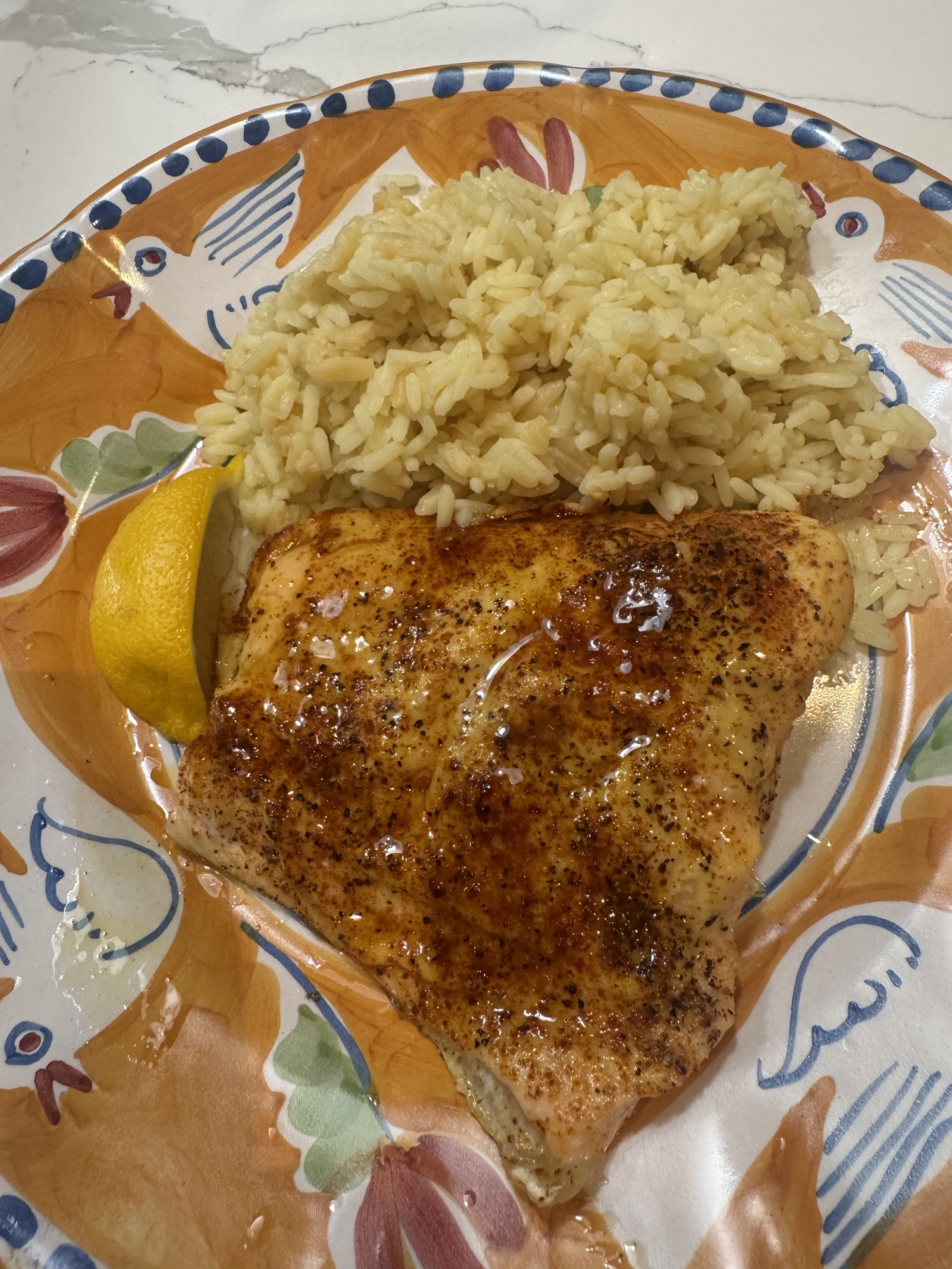 This is a simple, quick to assemble and delicious chicken recipe. We prefer chicken thighs because we think they are tastier. I am sure this would be delicious over chicken breasts as well. If making chicken breasts the cooking times could vary. This whole dish from start to finish was just under an hour!!!! Now that’s a recipe I can get behind. Hope you enjoy it as much as we did.