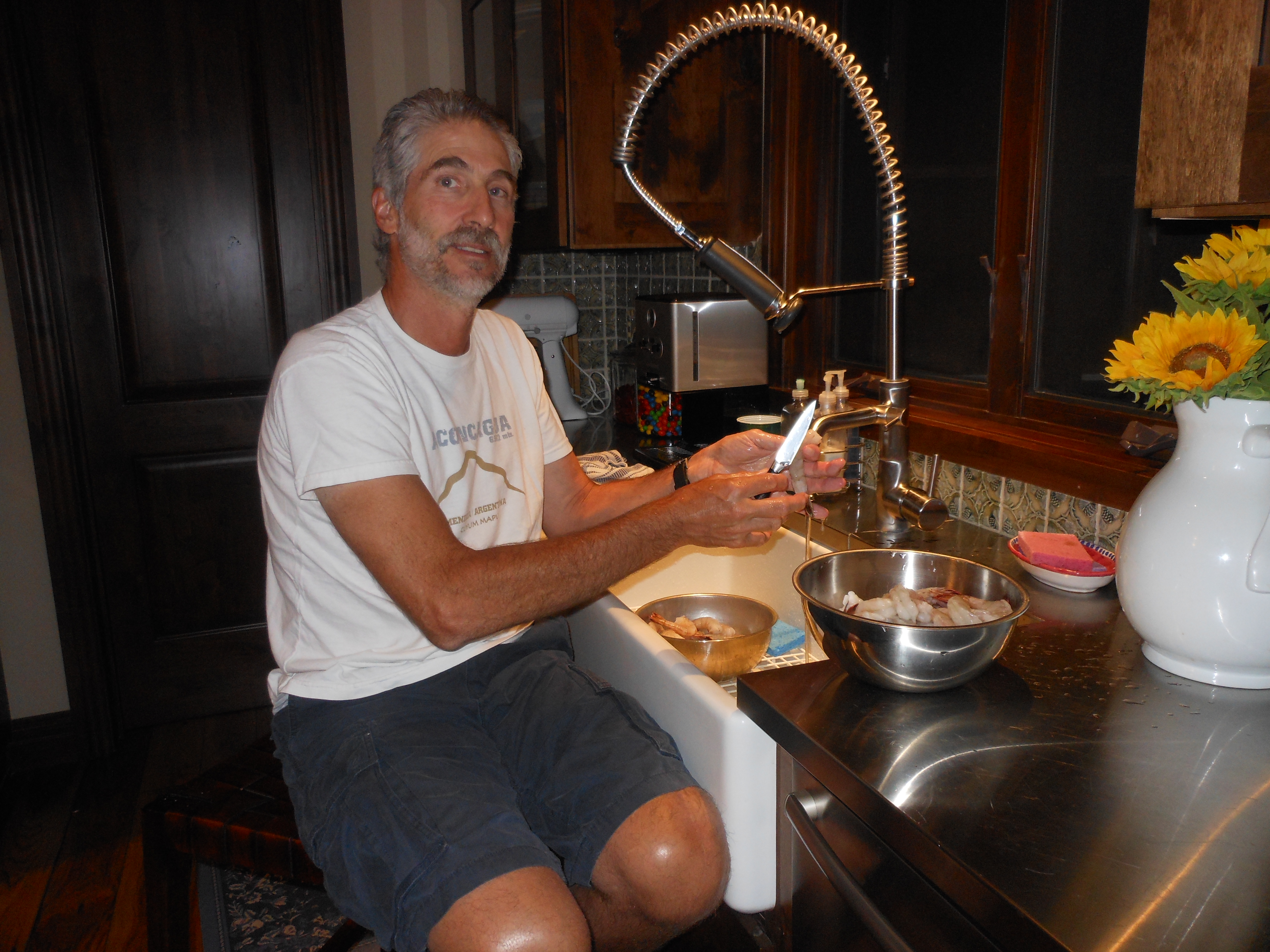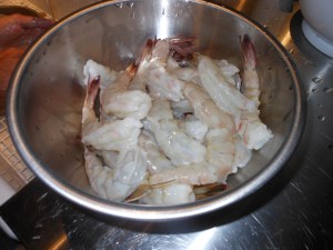 For shrimp I use Under 12’s, that’s about 12 to a lb. You can use whatever you like. The larger the shrimp, the easier it is to skewer. Since I am married to a shrimp expert, I am a bit choosy about my shrimp. This advice comes straight from Joel: always ask for mexican, shell-on, white shrimp. For size, ask for under 15, under 12, or under 10. Of course, you will have to peel and devein these babies but they’re worth it. I left the tail on this past weekend for grilling.