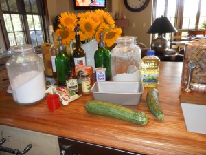 2 cups grated, unpeeled raw zucchini (about 2 1/2 nice size zucchini), after I grate it , I put it in a mesh sieve and drain it, zucchini is very watery, the trick to baking with it is to rid it of the water. Push down on zucchini while it’s draining and get the water out.