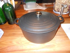 Heat the olive oil in a large, oven proof pot (Le Creuset was made for this) over medium heat. Add the onions and garlic and cook for about five minutes or until translucent. (Don’t burn the garlic.) Add the red pepper flakes, dried oregano and vodka and continue cooking until the liquid is reduced by about 1/2. Add the 2 cans of tomatoes with their juices. Add 1 tsp kosher salt and a little bit (a pinch) of black pepper. Take a fork and crush up the tomatoes before putting the sauce in the oven. You will be using a blender or blending stick later, so don’t worry if they’re not completely chopped up beforehand. Cover the pan with a tight fitting lid and place it in the oven for at least 1 hour (you can leave it for 90 minutes if you have the time.) Remove the pot and let it cool for about 15 minutes. This is where the wonderful Le Creuset pots come in handy. They are perfect for oven to table and you can use an immersion blender right in the pot.