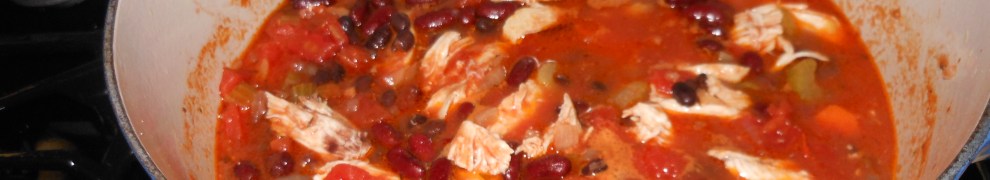 Bring the liquid to a slow simmer. Reduce the heat to medium low and simmer gently uncovered until the chicken is almost cooked through, turning the chicken breasts over and stirring mixture occasionally, app. 30 minutes. Using tongs if you have them, if you don’t , buy them, remove the chicken to a plate and allow to cool ( about 15 minutes) Discard the bay leaf, add the beans to the pot ( remember to drain) and bring to a simmer until the liquid is reduced to a stew-like consistency, probably another 15 minutes or so.
