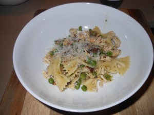 I think Sunday night is the best night to stay in , cook dinner and relax. So I went to make the Bowtie Pasta, mushrooms, sausage, and peas. Couldn’t find Turkey Sausage anywhere, not Whole Foods, not Fairway, and I gave up. I bought ground turkey, which just so you know works perfectly well. I season it up a lot more with salt and pepper, and it’s just fine. Have had this problem before and this is what I did. I like to eat in and be in control of what is going into our meal. We all eat out so much these days, isn’t it nice to just kick back , cook and eat dinner, and know what it is that is going into your body? I think it is. I’m not saying we should all be cooking every night, but once in a while give it a try. Happy Daylight Savings, this day is so long anyway , there’s plenty of time to cook unless you’re running the NYC Marathon then I’ll give you a pass.
