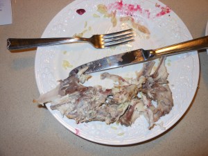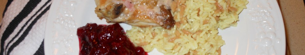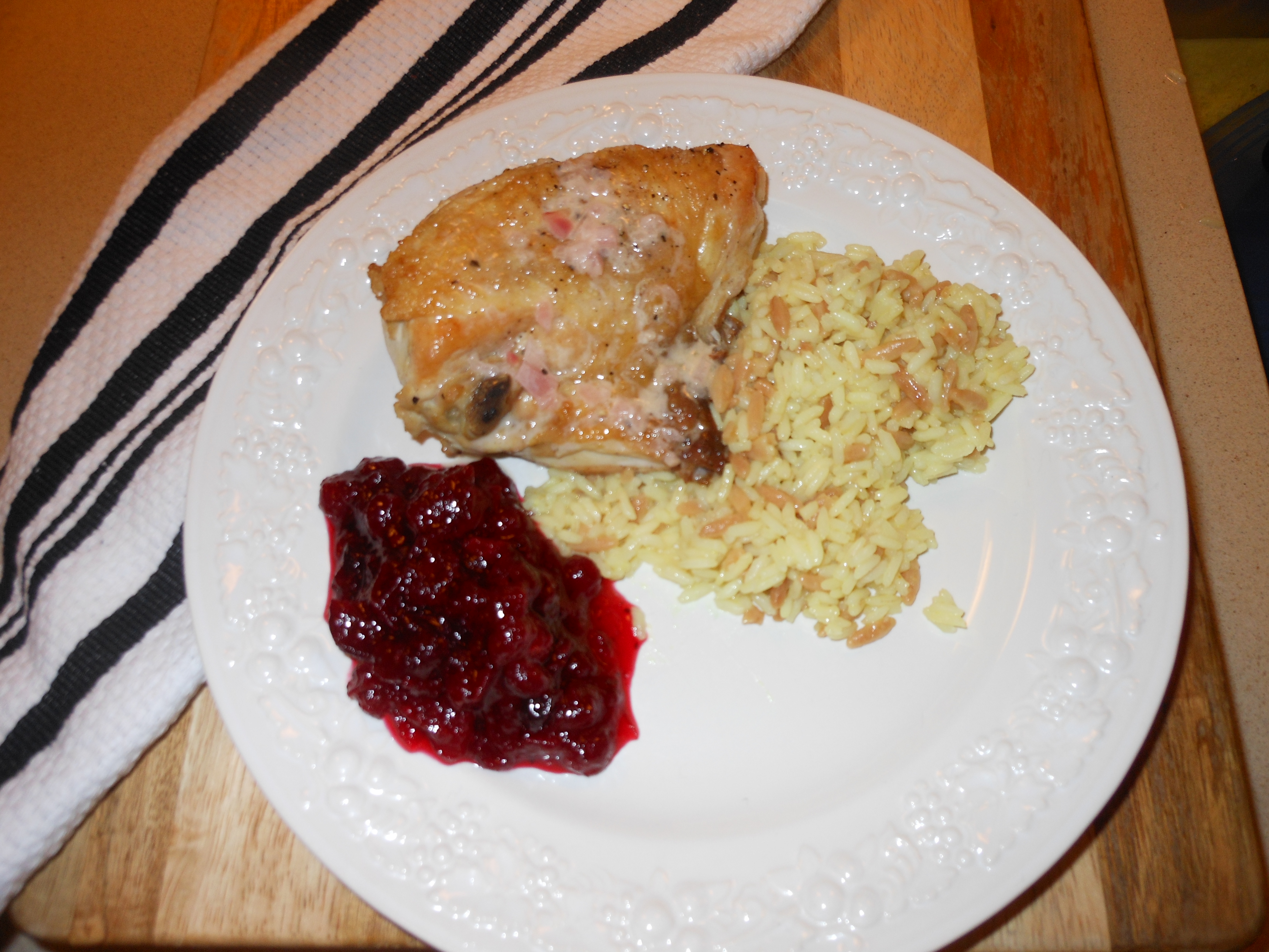 This is what I made for dinner a few Sunday nights ago, before Thanksgiving I might add.  This chicken makes a beautiful presentation and is easy enough for a delightful quick dinner for 2, or a lovely dish for company. It has a rich cream sauce which contains white wine, shallots and lemon.Why does everyone shrink back when you say cream sauce? Each serving doesn’t have that much cream in it, and honestly once in a while never killed anyone, so enjoy and live a little.  I served with rice. This is sheer perfection on a plate. Joel requested that I put the “after” picture on this post. I also served with fresh cranberry sauce that I had just made for Thanksgiving. Original inspiration for this dish came from The Barefoot Contessa.