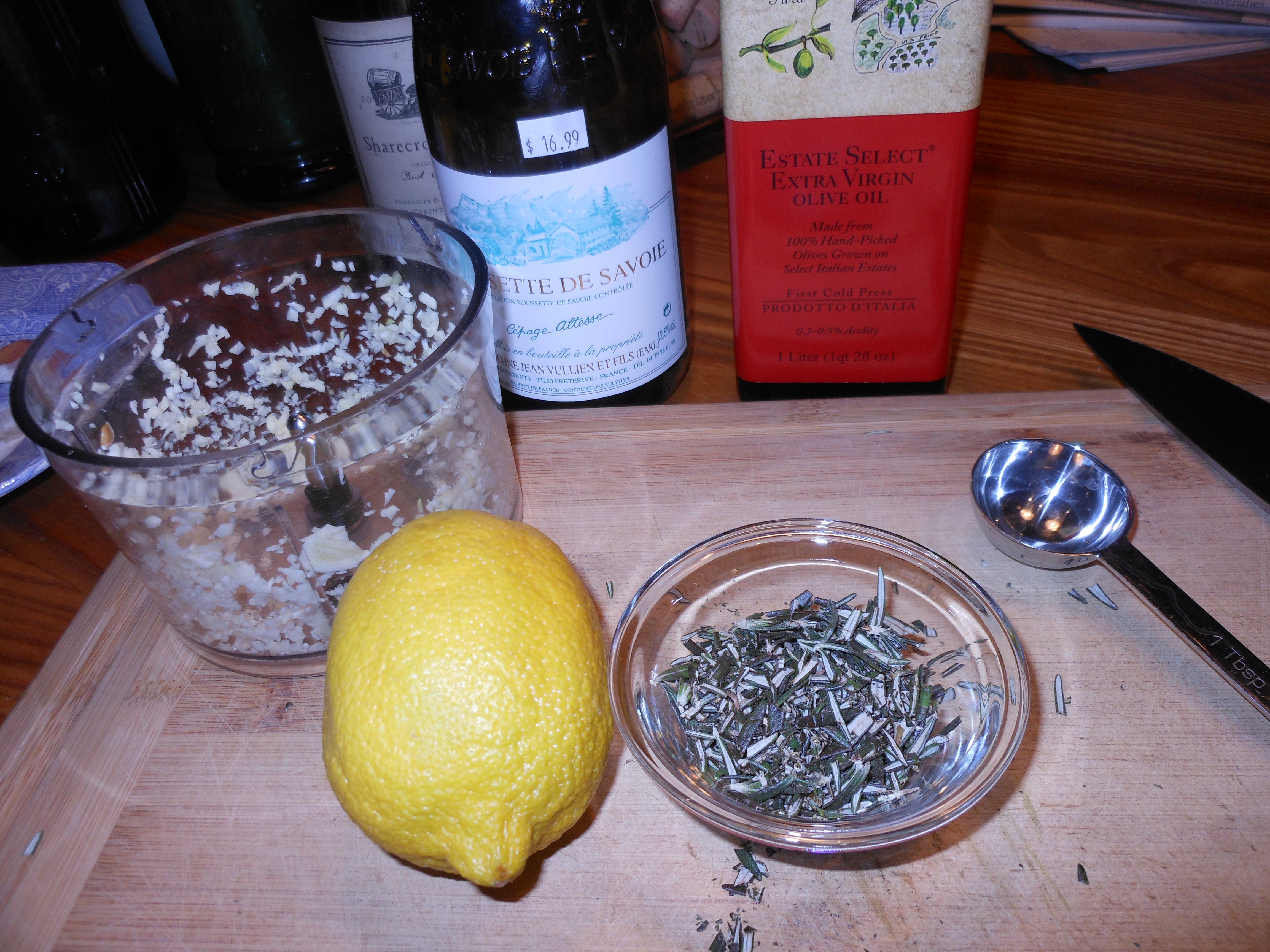 I have archives upon archives of saved recipes. Some days I just go through to see what I’d like to make next. I often come upon old ones which I’ve totally forgotten about. Other times, I cut out new recipes that I’m eager to try. But this one came to me through our friend, Drew (Susan’s husband). He got into cooking a few years back, found this recipe and turned me on to it. It is light and flavorful. What a ringing endorsement. For a while, it was very much a part of my repertoire. Then, for no apparent reason, I just stopped making it. But recently, while going through some older chicken recipes, I came across this one again. It really is simple–very few ingredients, and a perfect dinner served with rice and a vegetable. It is originally from Rachael Ray with a few changes on my part. If you’re not fond of rosemary, this recipe isn’t for you. (Although my son-in-law, Brian, isn’t a fan and he liked this chicken a lot anyway.)