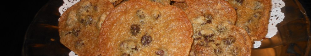 Drop small tablespoonfuls of dough onto the prepared baking sheets, about 3 inches apart. Rotate the baking sheets halfway through the baking process, I rotated the cookie sheet after 10 minutes, they baked between 12 and 15 minutes in my oven . You want them to be crispy and brown, not just around the edges. You can see in photos they were flat and crispy with chips coming out of cookie, original recipe called for 20 minutes that would have been way too long in my oven. They came out perfectly but I did keep an eye on them. After you rotate them, just keep an eye on them. If cookies spread into one another in the oven take a sharp knife and cut them apart while they are still warm then when I lifted off cookie sheet they came apart. When finished, remove the cookies from the oven and let cool completely on the baking sheets.