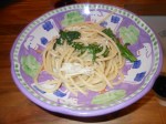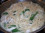 There are those nights when the last thing you feel like doing is going out. A home cooked meal would be great, but it’s 5 o’clock and you haven’t prepared, etc. Here is a great meal you can make with a quick stop to your nearby grocery for a rotisserie chicken and a few ingredients. I make this meal with broccoli rabe or baby broccoli (which seems to always be available in produce section) or even just regular broccoli. If you can pick up fresh pasta that is best; if not, dry pasta will do just fine. This meal is a staple around our house and this is how I make it. I originally found it in Giada De Laurentis’s family dinner book. I made a few changes to the original which better suits us.