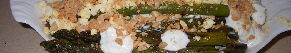 Oh, so many things to do with asparagus. This recipe is a combination of asparagus, almonds, and eggs. A different kind of salad served as a meal for lunch or a side salad with dinner. I like to cook the eggs ahead of time. I usually do them in the morning or the day before and leave them in the fridge until I need them. Yogurt dressing adds a bit of a new flavor. I tried the Za’atar in place of smoked paprika. If you still don’t have the Za’atar, you can use smoked paprika or if you like a little kick, use hot paprika. I used Marcona almonds because I love them. The thing that’s really special about this recipe is the way the asparagus is prepared. It’s pan – roasted and you get that same effect you would from a grill but no need to grill or run your oven till the smoke detectors go off. The original inspiration for this recipe comes from one of my favorite sites, Smitten Kitchen.