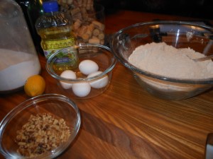 Mix wet ingredients into dry , add nuts.
