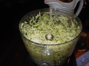 *grating zucchini is so very easy with food processor grating blade. Just cut pieces to fit into feed tube. It’s perfection.