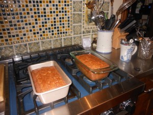 It’s that time of year again when zucchinis are everywhere. I love to use them in breads, muffins and fritters. This morning I baked 2 zucchini loaves with the help of this recipe. It takes a lot of ingredients but it’s worth it. With the help of a food processor the zucchini is shredded in no time. Zucchini came from my friend Shelly’s garden and they were beautiful. If you have a friend who has some get a hold of it, or just buy it from the market. Breads are awesome because you can freeze them and take them out and bring back them memory of that summer day you baked them. Enjoy!