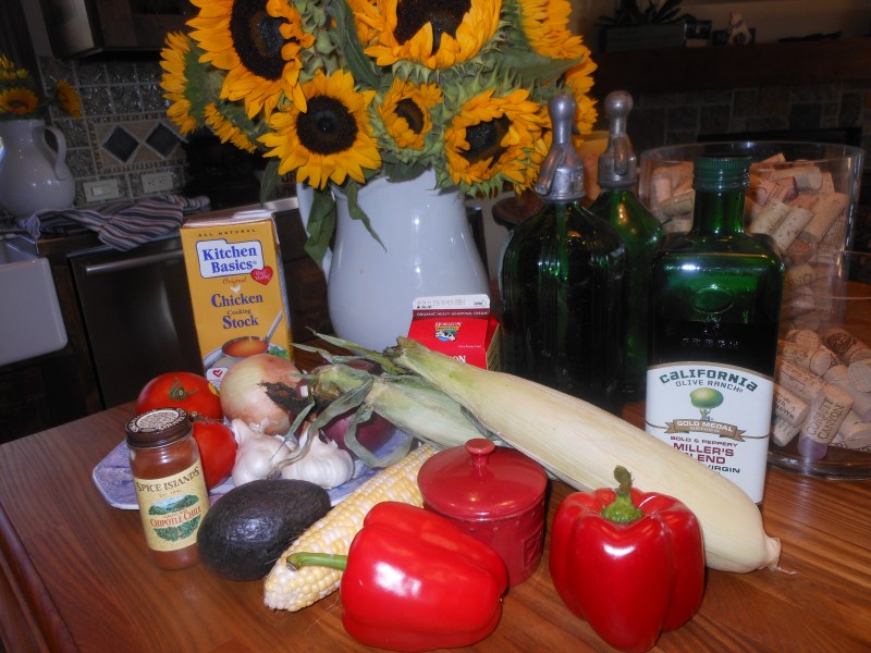 Corn Soup with Roasted Peppers and Tomatoes (can be vegetarian)