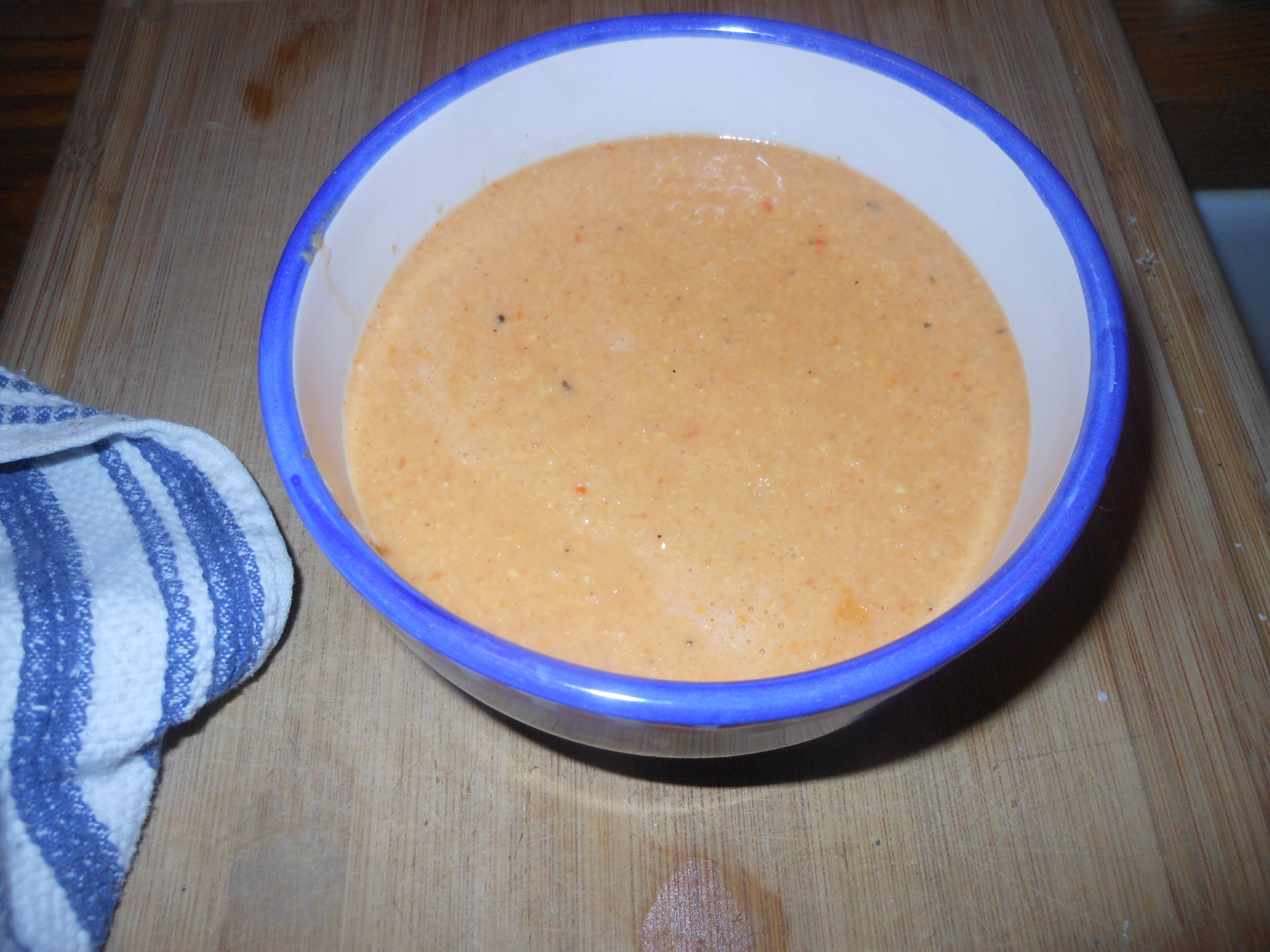 Corn Soup with Roasted Peppers and Tomatoes (can be vegetarian)