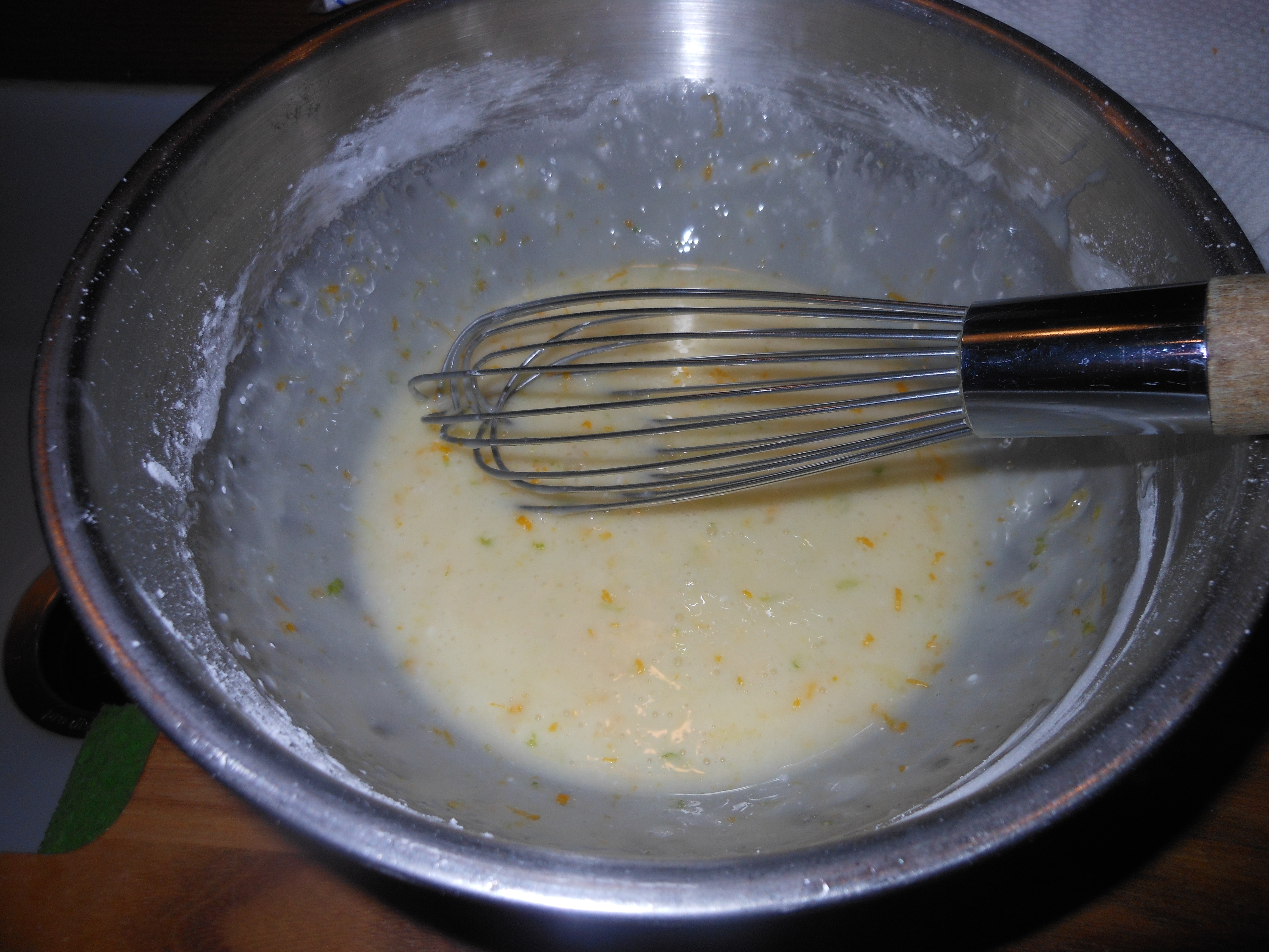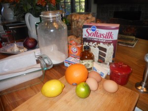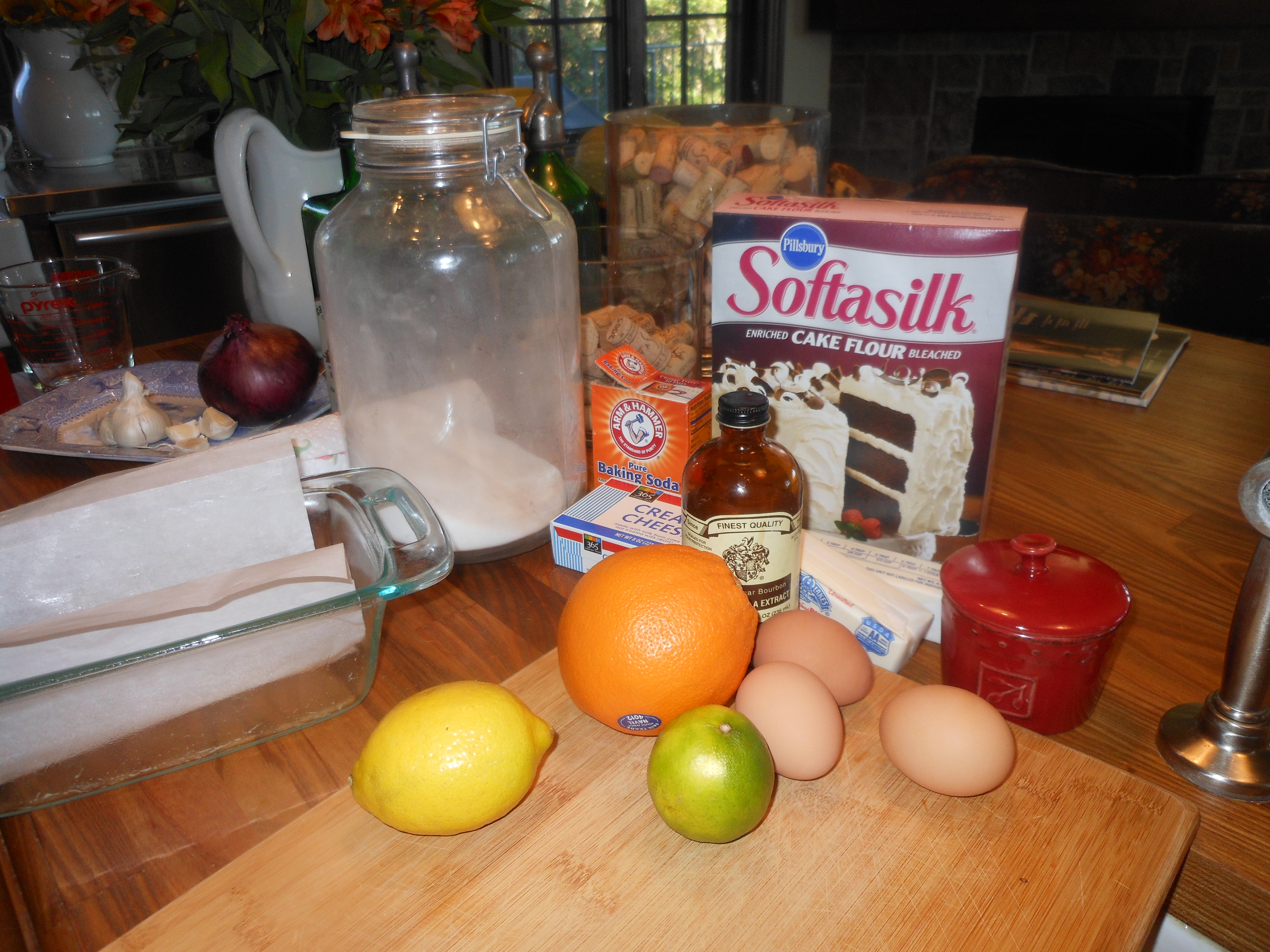 Whenever I bake with cream cheese I never get a dry cake. It moistens the cake like nothing else.  I got this recipe out of Bon Appetit and it is nothing short of amazing. It is fairly simple , has a lot of citrus ingredients, lime, orange, and lemon but nothing exotic or difficult to obtain.  You’ll need a standard size loaf pan, I like the glass ones, but any kind will do just fine and you will need a zester that zests finely. (not a grater, a zester which you can buy at any kitchen supply store)  You can bake this cake a day ahead , and do the glaze before you’re about to serve. I cut the cake into 1/2 ” thick slices.