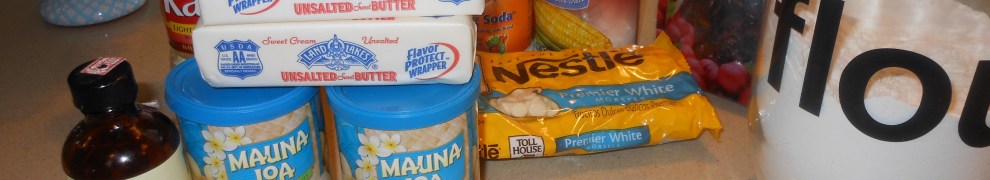 Preheat oven to 325 degrees. In a large bowl, I placed flour, baking soda and salt and mixed together. In bowl of kitchen aid mixer I placed softened butter, sugars, corn syrup , vanilla, butter and eggs, mixed at medium speed while adding the flour in. When it’s all combined scrape bowl with rubber spatula, and stir in white chocolate chips , nuts and cherries.