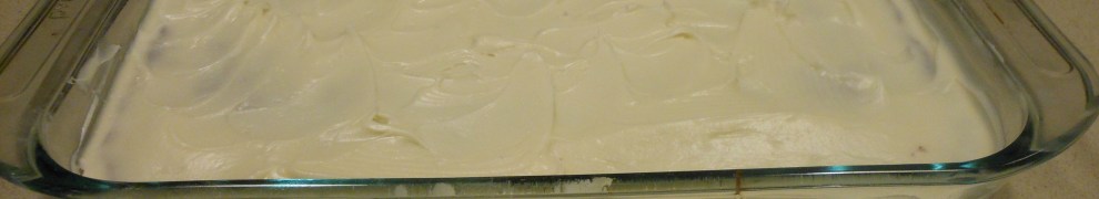 I love Banana Cake and since I always seem to have rotting bananas in the house it’s the perfect thing to make. I have tried so many recipes over the years and have posted mostly loaf style banana breads. I decided to make this one a sheet cake in a 9×13 Pyrex and I also decided to frost it with a delicious cream cheese frosting! I think this is a super easy cake to bake, perfect for beginner bakers. The orange zest gives it a distinct flavoring, it met with raves in my house tonite. Making it in the sheet cake style takes out the room for error. A 9 inch round cake would be perfect as well and you can frost just the top or sides and top. Just follow the same directions. I baked cake in the afternoon and frosted it that night for the next day. I kept it in fridge overnight, and took it out of fridge for a few hours so frosting and cake would be at room temperature. Give this one a go!