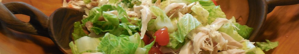 Put salad greens, avocado , chicken and any other vegetables you’d like in a large bowl. Add dressing and mix salad adding dressing as needed.