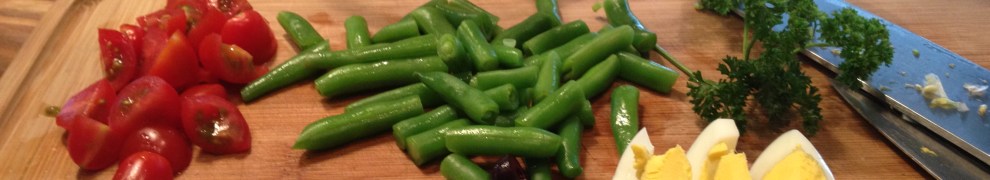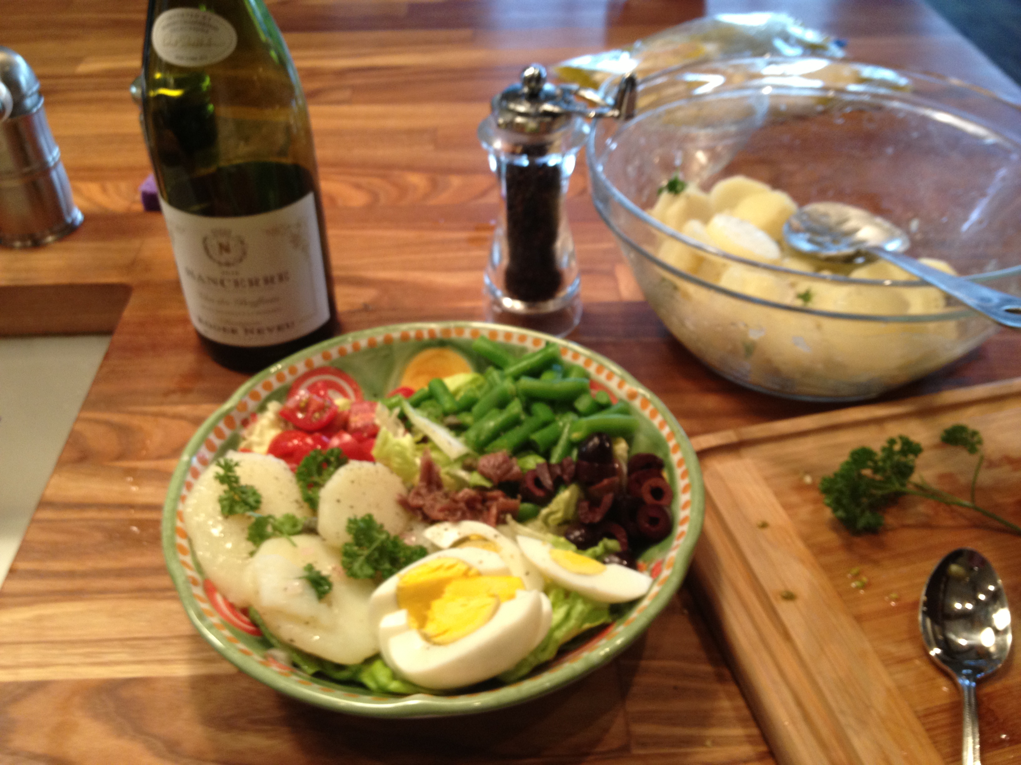 In honor of Julia Child’s Birthday I always try to cook a recipe from her cookbooks. Julia tended to make even an easy recipe a little more difficult but this one is really not to difficult at all. I also have her ratatouille recipe on my blog and highly recommend that for a delicious dish made with fresh vegetables. This is a delicious main-course salad, and I have to say the Nicoise is probably my favorite of all time. If I am out for lunch or dinner and it’s on the menu I almost always order it no matter where I am. No two are ever alike. In honor of Julia I am going to make this beautiful hearty salad for dinner.