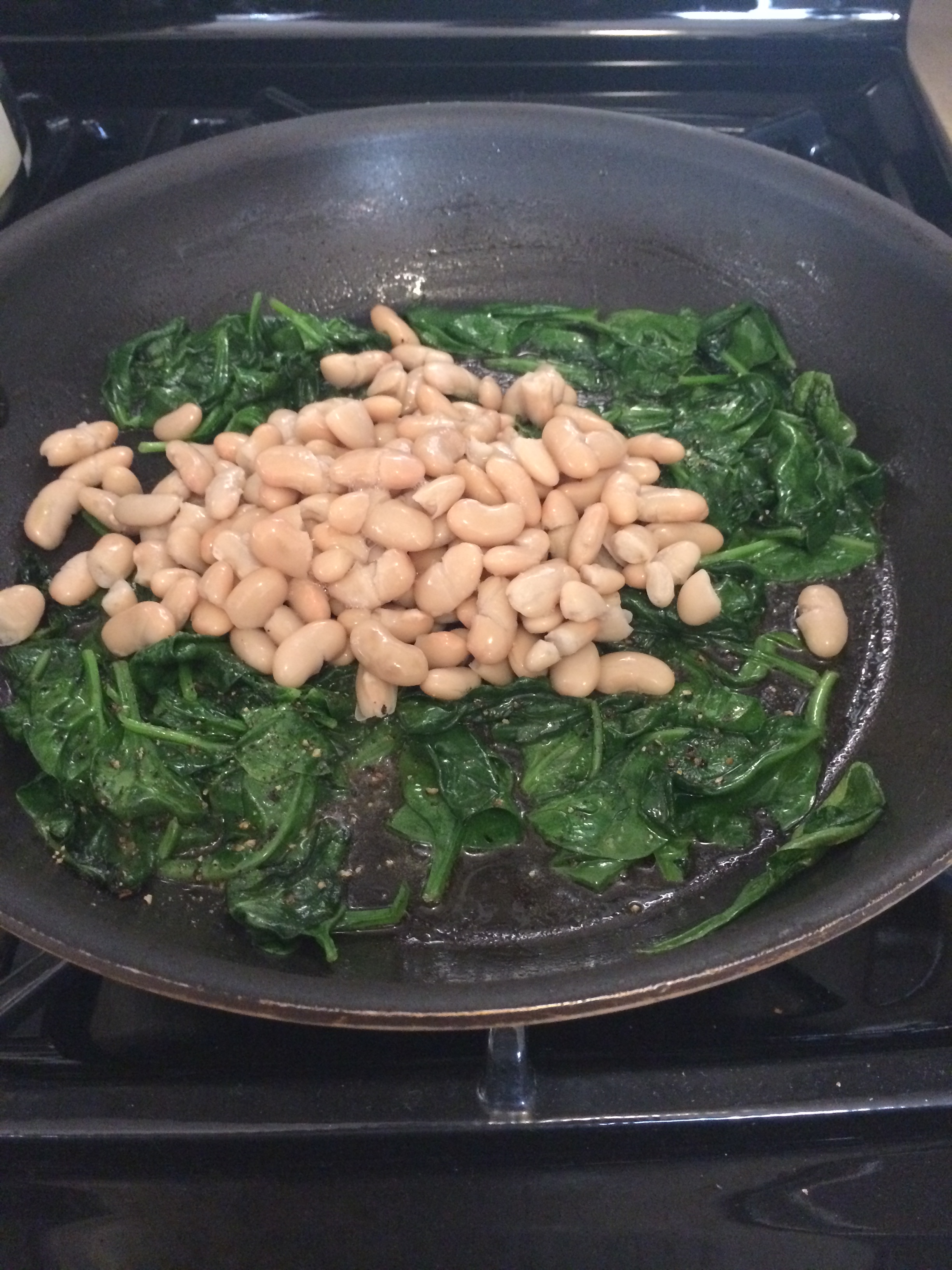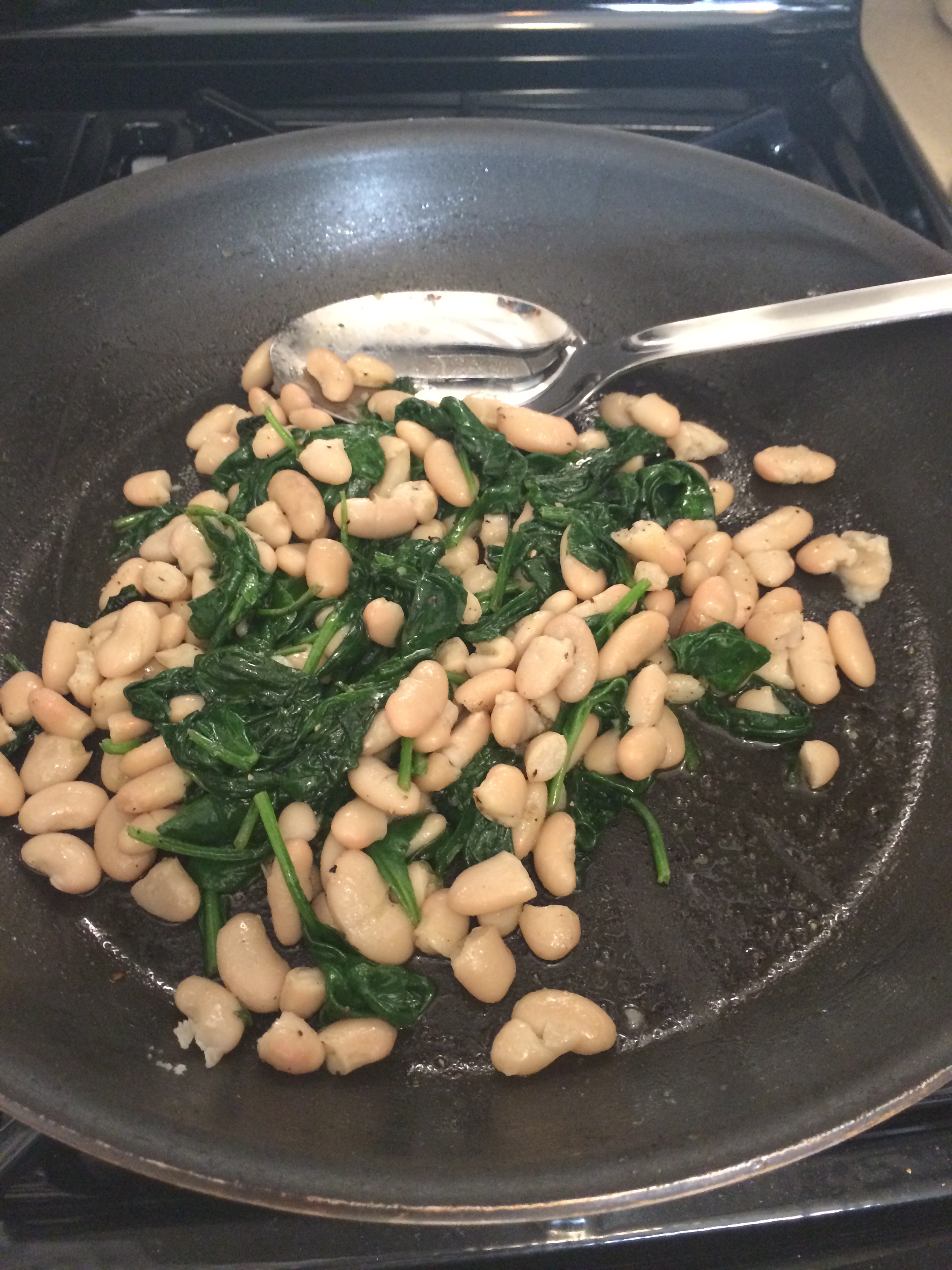 3 tablespoons olive oil, 2 tablespoons to cook kale and 1 tablespoon at the end