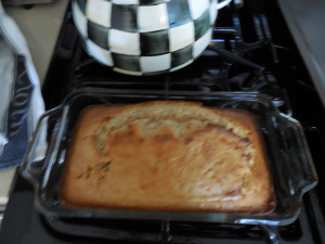 Kitchen website and thought it sounded amazing. You’ll need a 9x5x3 loaf pan and if you’re loaf pan isn’t this size you can pour some of the batter into muffin tins, just don’t fill to the tippy top, it will be a mess, 2/3 to the top is perfect. I made 2 of them and will be freezing one for another time, it should stay in freezer for at least 2 months, cool down completely then wrap with a good plastic wrap and I then put it in a large Ziploc and mark what it is and the date. This bread is not super sweet at all despite the amount of sugar that went into it. I used sweetened coconut and sugar. I ate it plain, and…