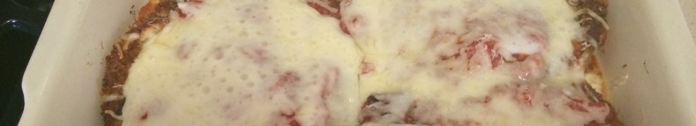 I spray a baking dish with cooking spray and ladle out one large ladle of sauce and thinly spread around the bottom of baking dish. I place the crisp chicken in the baking dish on top of the little bit of sauce. Cover with marinara (recipe below) top with parmesan and mozzarella . Bake for app. 15 – 20 minutes in a 350 degree pre-heated oven. Serve immediately with spaghetti or vegetable or both!