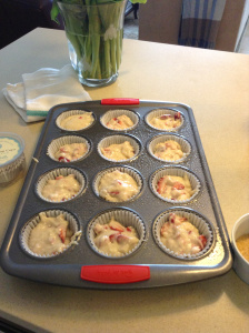 I have never cooked with rhubarb before and every spring when I see those beautiful red stalks in the produce dept. I want to grab them up and do something with them. Well this time I was in Whole Foods grabbed a few stalks and made it my business to use it especially since they are only in season for such a short time. I had a recipe for strawberry muffins so I added in some rhubarb. Yum! Really yum. I even tasted rhubarb raw which was super super tart tasting which is why I sprinkled sugar on the rhubarb and berries before I put in the batter. I am now going to make a rhubarb crisp and an upside down rhubarb cake that I have wanted to try. I think these may be on my table for Mother’s Day Brunch because they are delish and so darn pretty to look at. Of course I…