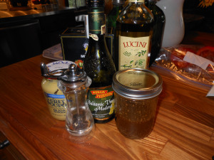In a small bowl, whisk together 1/4 cup Balsamic vinegar, 1 tablespoon Dijon (I use 2 because I like a strong mustard flavor but you should use according to your own taste.) Add a pinch of sugar. (What exactly is a pinch? Pour a very little bit of sugar into the palm of your…