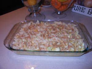 firstly, thanks to my friend of many years Marcy Braun for this recipe, it is pareve and so it is a good alternative to the apricot one. This one would be fine served with meat, and still be rather yummy and sweet. It is a first time out for me. Enjoy it. It is very easy, and not so many ingredients. i just made it and it is delicious!!! thanks marcy 🙂