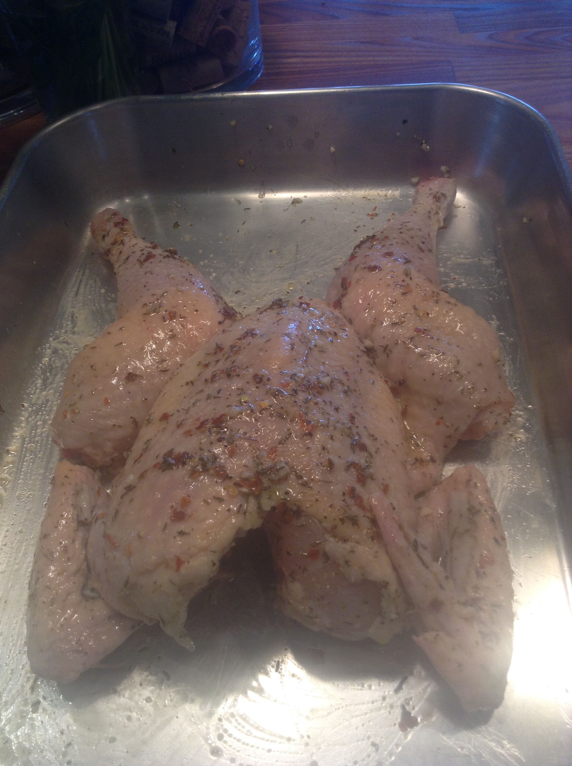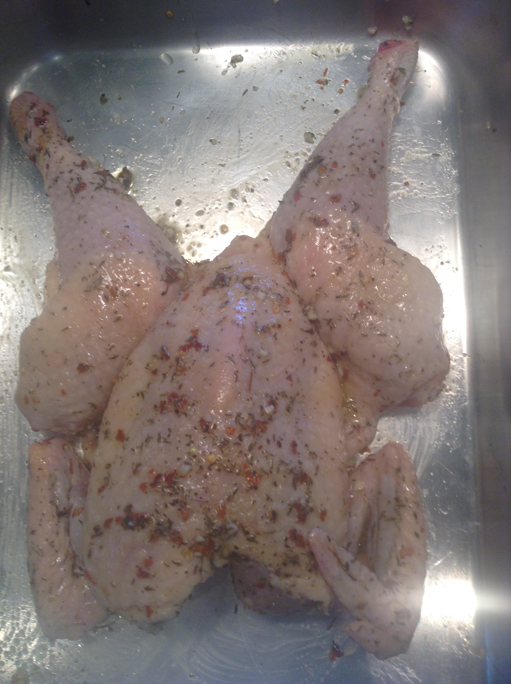 1 whole chicken with back-bone removed and flattened as much as possible, if you’d like you can have chicken cut into 2 halves.