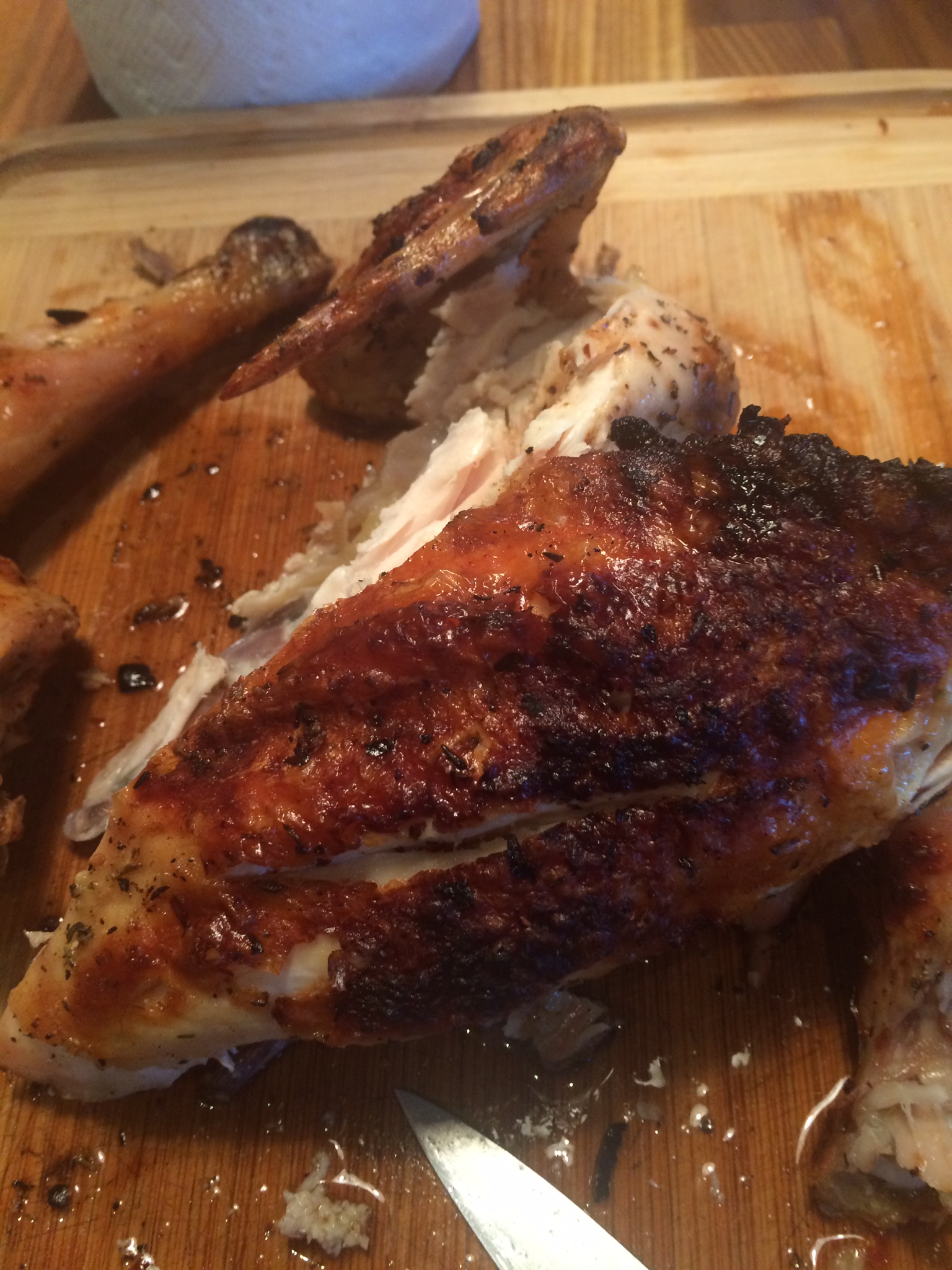We absolutely love spatchcocked chicken. Simply delicious made in the oven and on stove top (see recipe for Spatchcocking the Chicken) . In any event I hadn’t ever made it on the grill and I wanted to . It came out just perfect, just wish I had better photos. We started eating it before I could photograph so I kind of assembled it and snapped. Next time I will take better photos and add them because this will be a staple in our house.