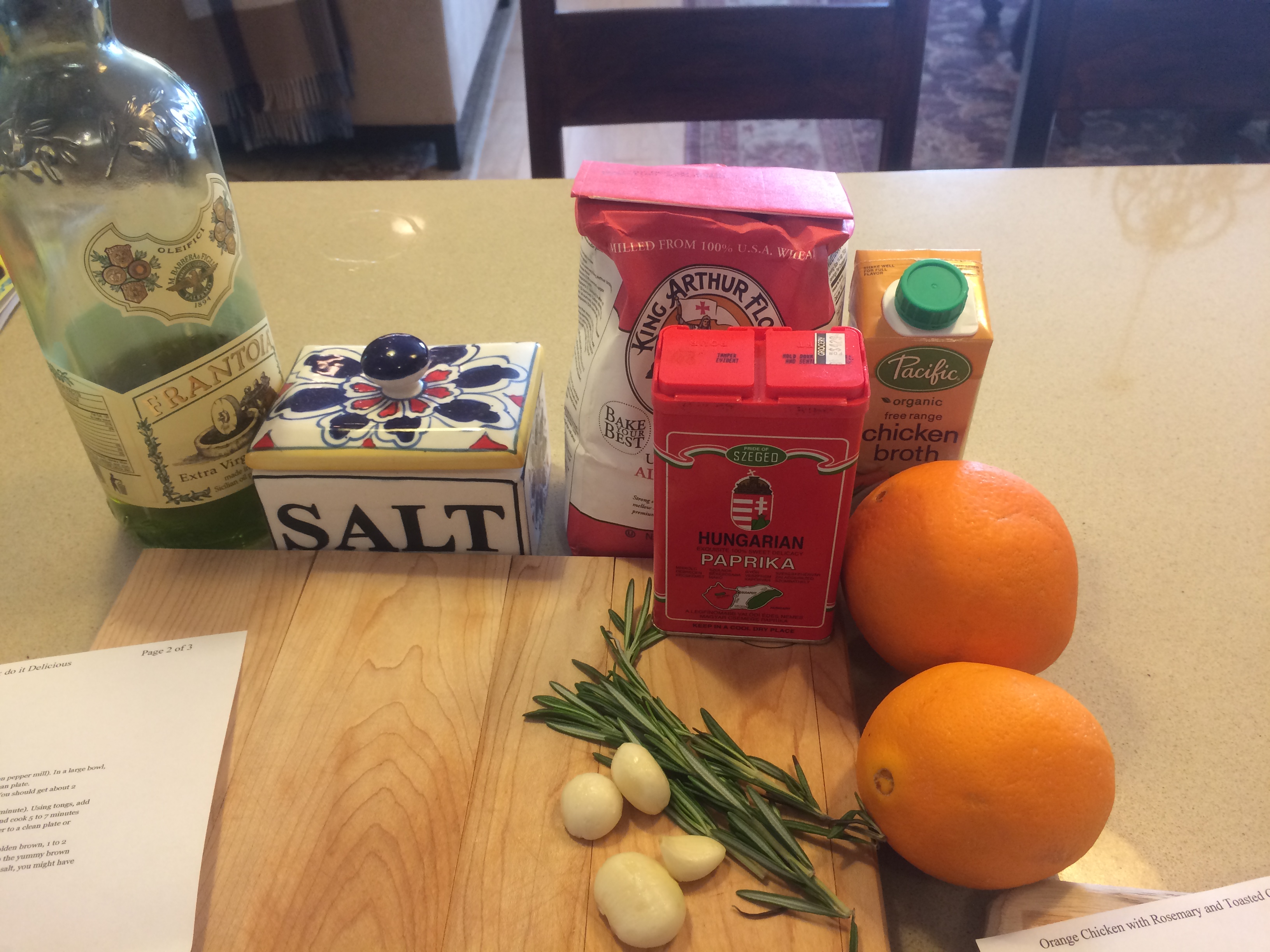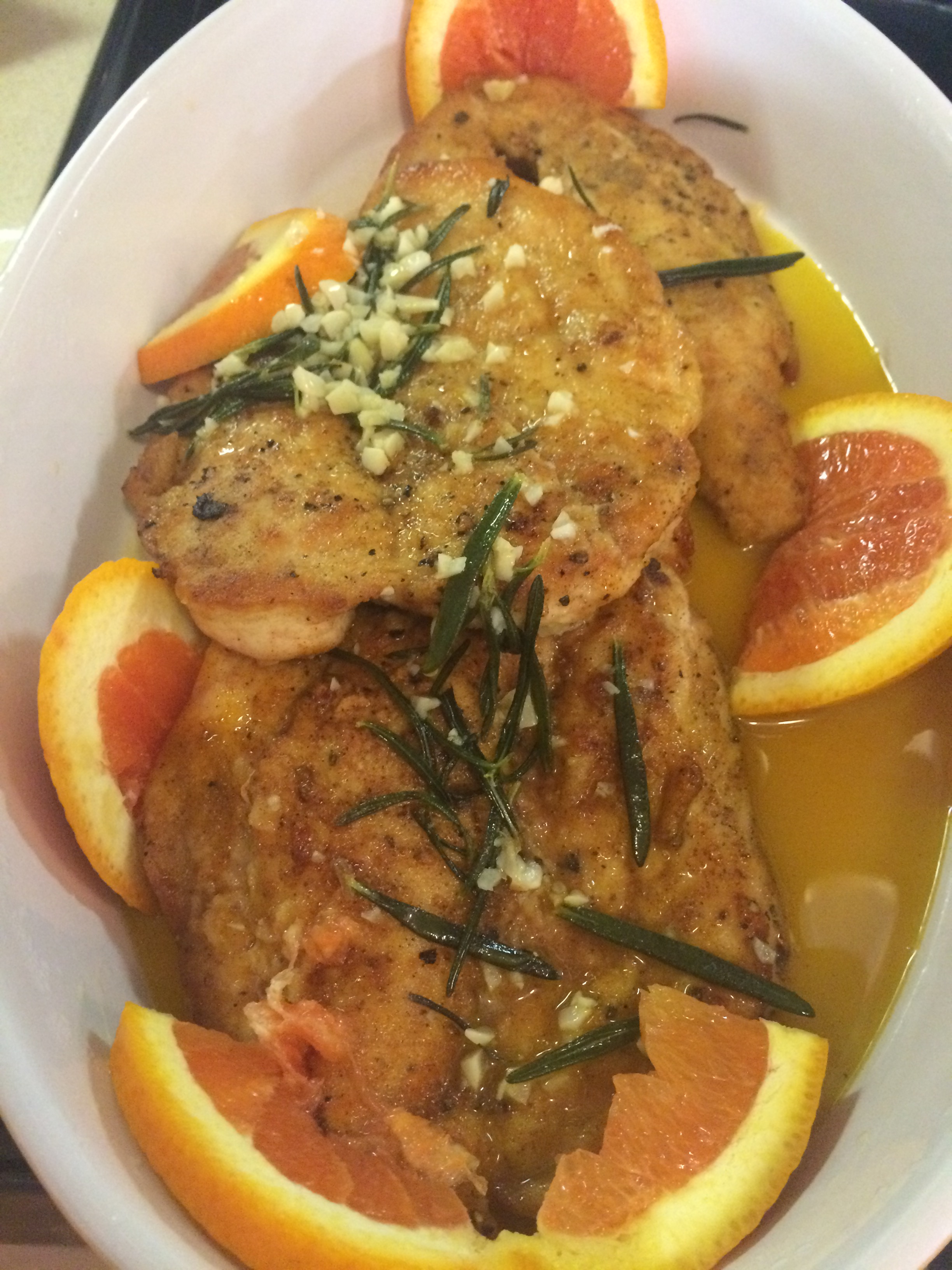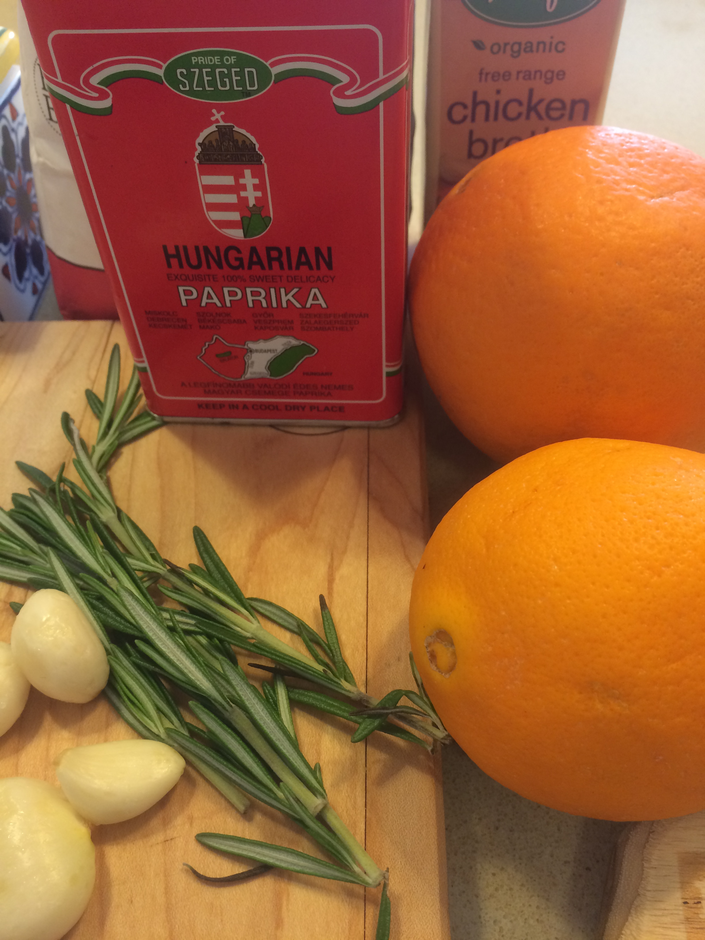 Once again I took this recipe from the inimitable Jessica Seinfeld. I just love her recipes mostly because they are so easy and so delicious. This one is pretty easy to make with very few ingredients. Just make sure to get yourself some fresh rosemary, some fresh garlic and use fresh orange juice! This is a must and I used some oranges for a very simple garnish.