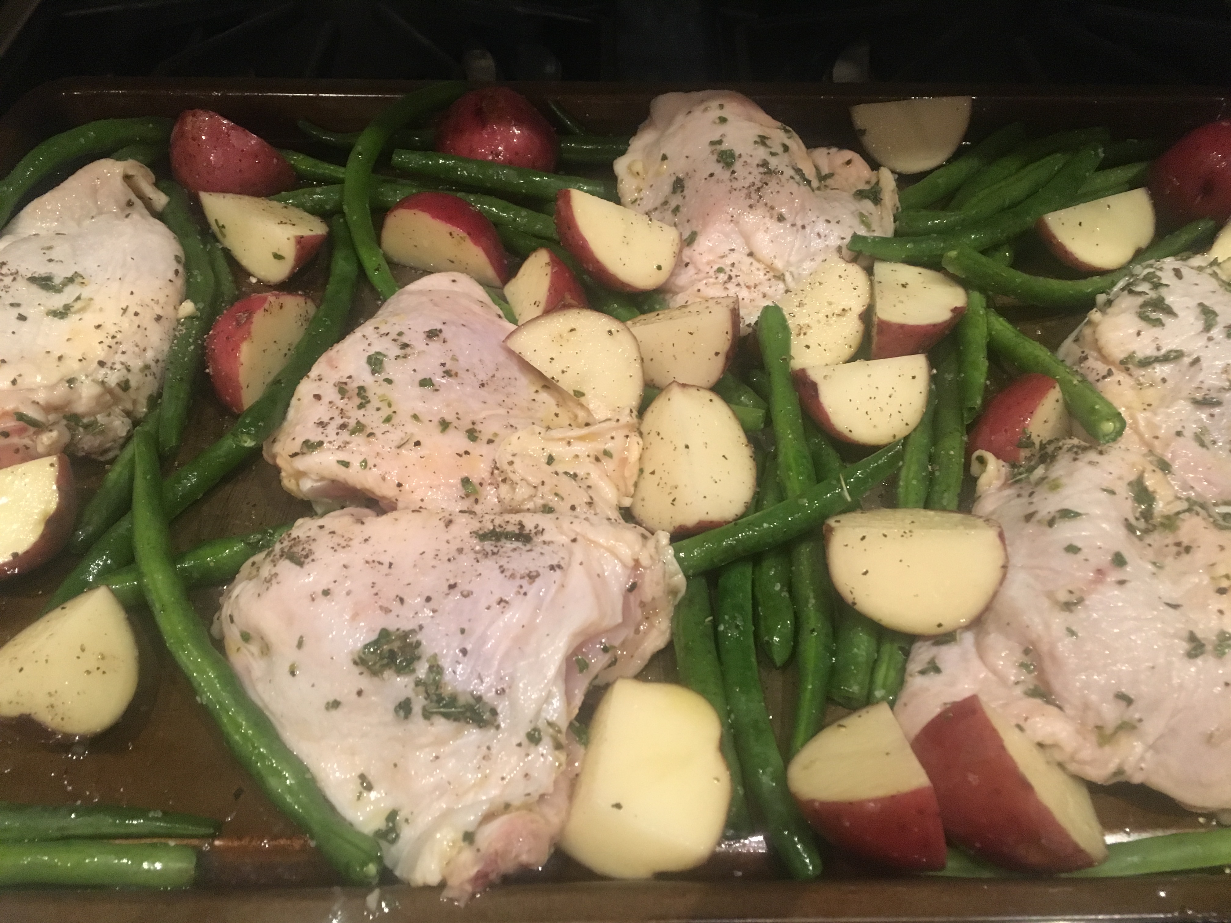 Sheet Pan Chicken –Meditteranean Style-String Beans and Potatoes