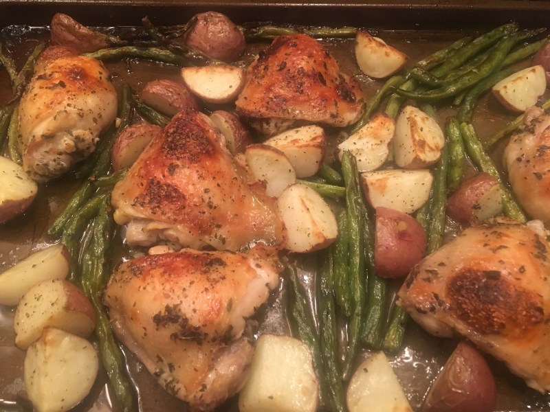 Sheet Pan Chicken –Meditteranean Style-String Beans and Potatoes