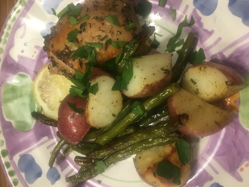 Sheet Pan Chicken –Meditteranean Style-String Beans and Potatoes
