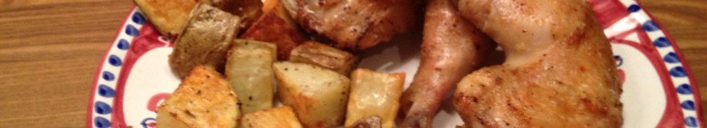 I have wanted to roast my chicken this way for quite some time, but always fall back on the standard. I have posted the standard way under Good Old Roast Chicken. You’ll need to remove the backbone of the chicken , and I am not that great with butchering so left it to the butcher in Whole Foods or whoever you go to. Just ask the butcher to remove backbone ( I discarded it or save it for making stock) and cut chicken in 1/2. This removal of the backbone of the chicken is known as spatchcocking , simply put, you roast the chicken in about 1/2 the time as conventional methods with the maximum crispiness to the skin, and very moist chicken is achieved. I used my more shallow Le Creuset pan and chicken fit snugly in which is what you want. You don’t want it in too big a pan, just make sure your pan is flame proof , a 12 inch cast iron skillet is also perfect. This is really easy, and I must give credit where credit is due, I got my inspiration from the Zuni Cafe Cookbook. I changed it a bit by cutting the chicken in 1/2 but used the times it posted and it was sheer perfection. Crispy and moist! Served with fresh cranberry sauce and roasted potatoes. You’ll have to turn your exhaust fans on for this one . By the way did I mention prep to table in an hour???
