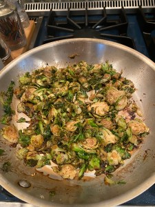 I served with scallions (sliced into thin small pieces) , rice and sauteed sliced brussels sprouts. Any veggie would be great especially broccoli but Joel has gotten so great with veggies but broccoli is still on the no fly list. But he eats and likes brussels so we stick with that.