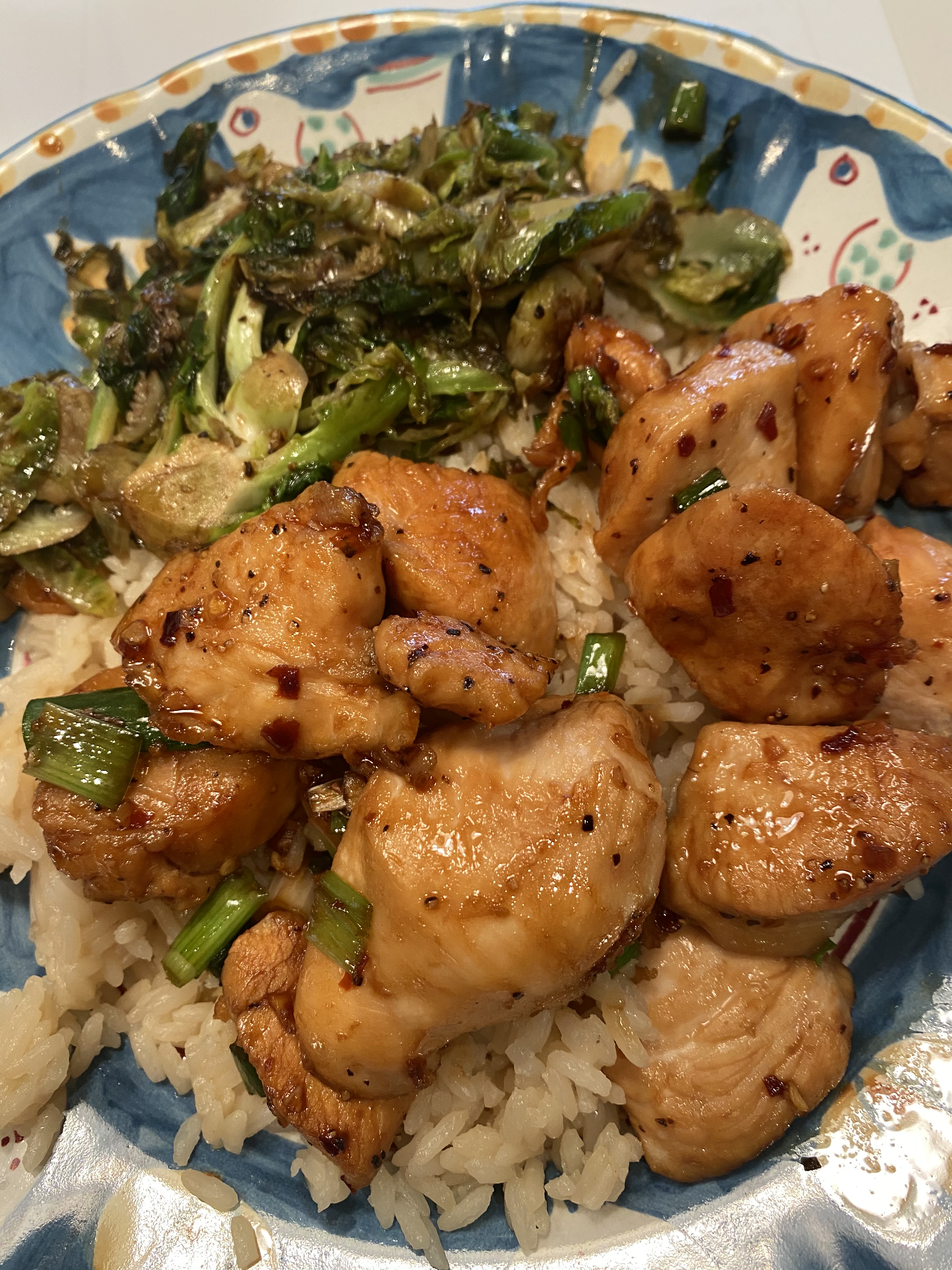 I served with rice and shredded sauteed brussels sprouts. ( recipe @cookingwithcandi.