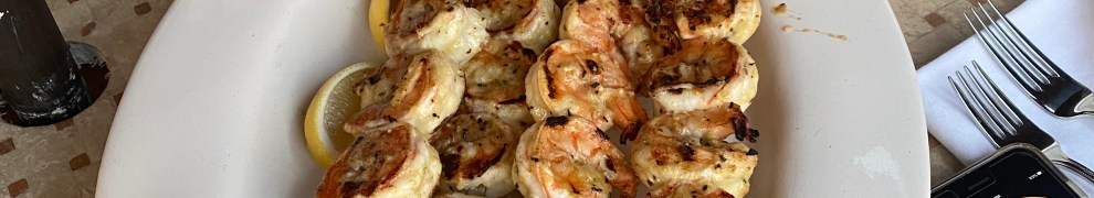 Marinate shrimp for about 1 to 2 hours — no more because the citrus can actually start the cooking process . I then put the shrimp on metal skewers which I prefer to the bamboo. They’re a worthwhile investment and have owned the same ones for many years. I place on the hot grill and cook for approximately 4 minutes on each side– keep in mind the size of your shrimp. The shrimp I use is rather large so takes about 4 minutes on each side. Obviously smaller shrimp will cook much faster– when shrimp starts to curl and turn pink is usually a sign they are done. You can always remove from heat and cut into one.