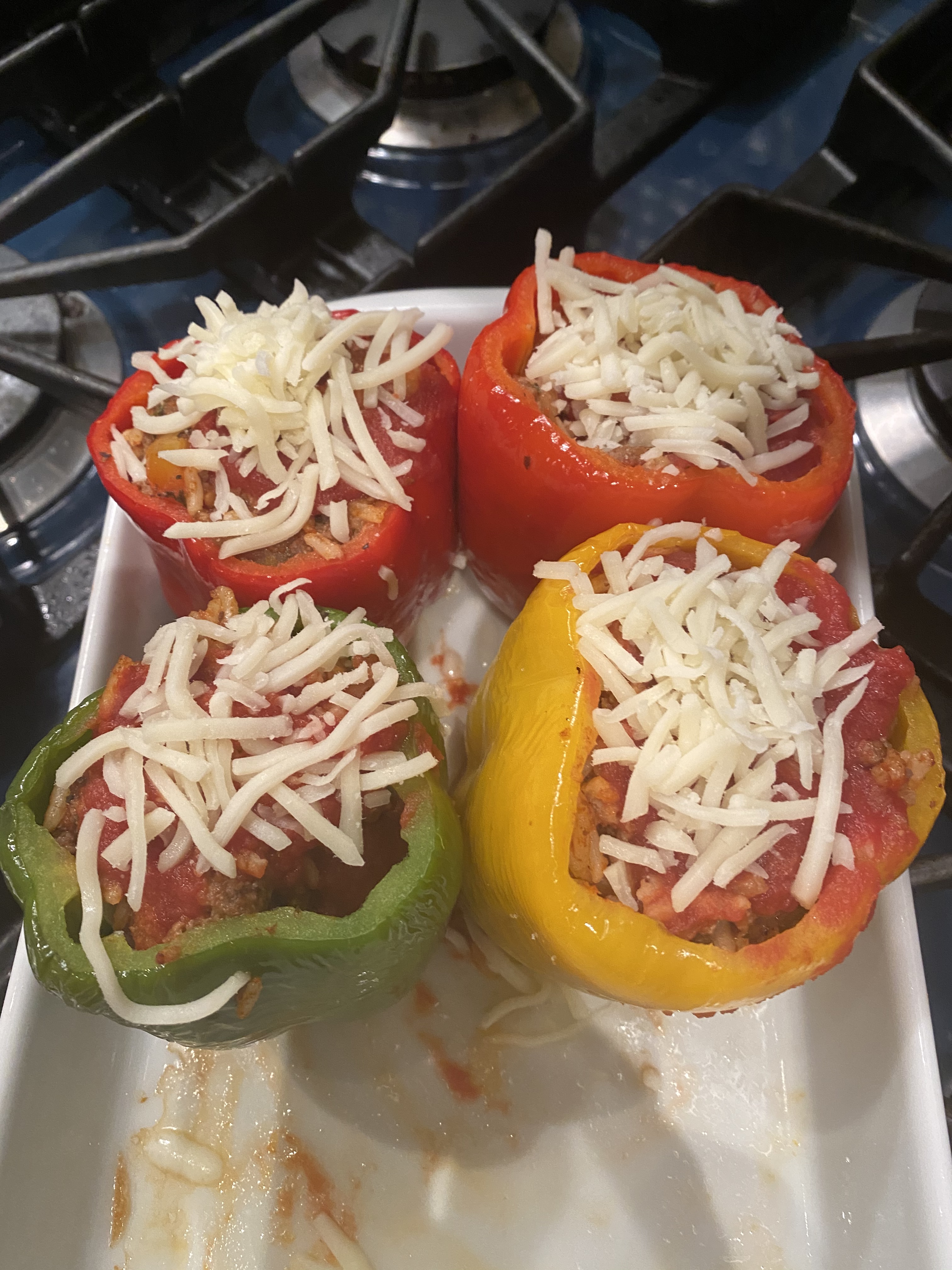 6 Bell Peppers , use any color you like –use medium to large sized and check that they will be able to sit up straight in pan