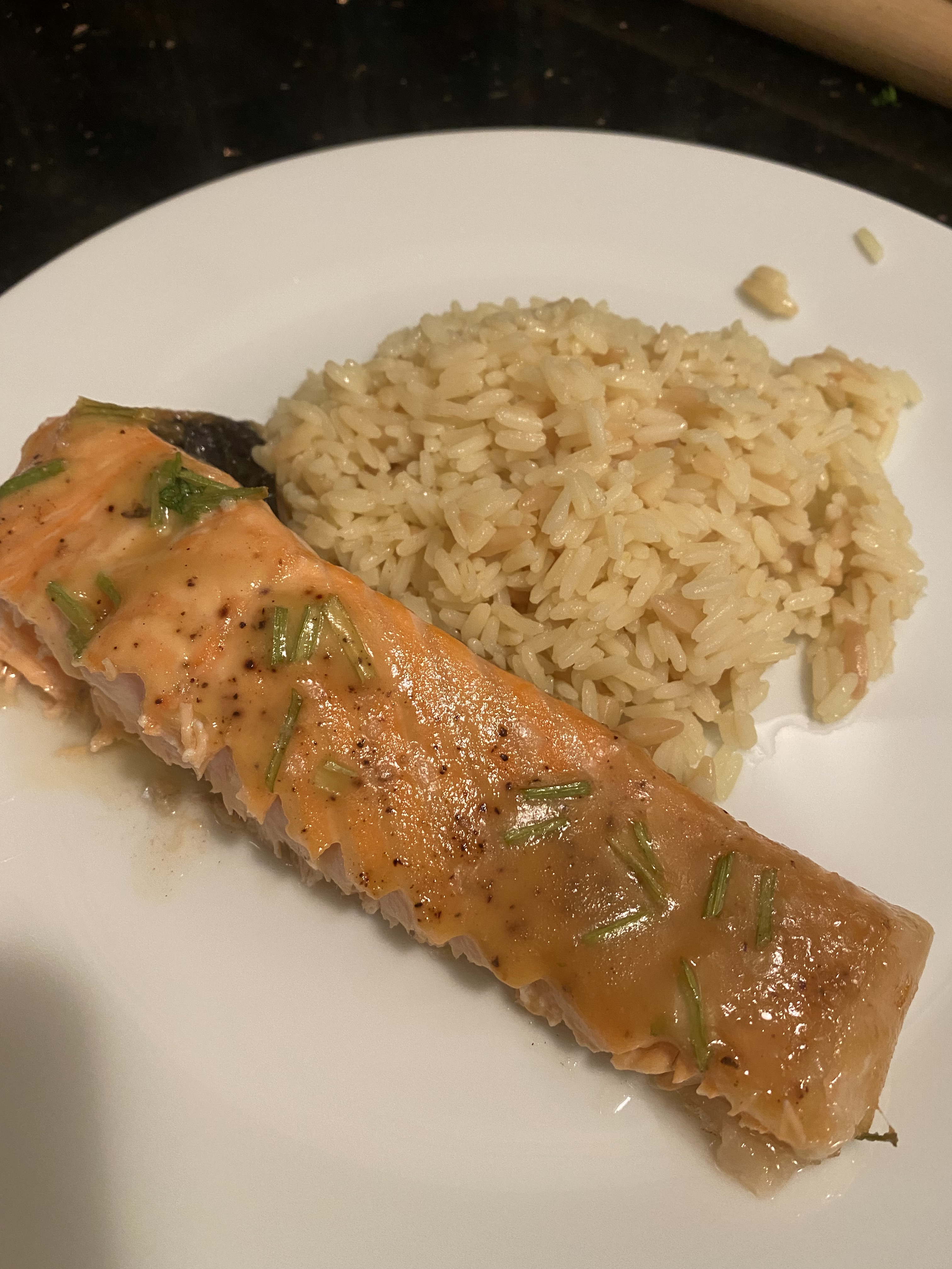 Yes that’s right I used Maple Syrup, Dijon Mustard and Mayonnaise in this recipe. Baked at a low temp for the first 20 minutes then a little higher for the last 5 minutes. It was delicious and perfectly cooked and melt in your mouth kind of goodness. Sweet and Savory served over rice with a vegetable or green salad. We love Cilantro so used it here but if you hate it just omit it.