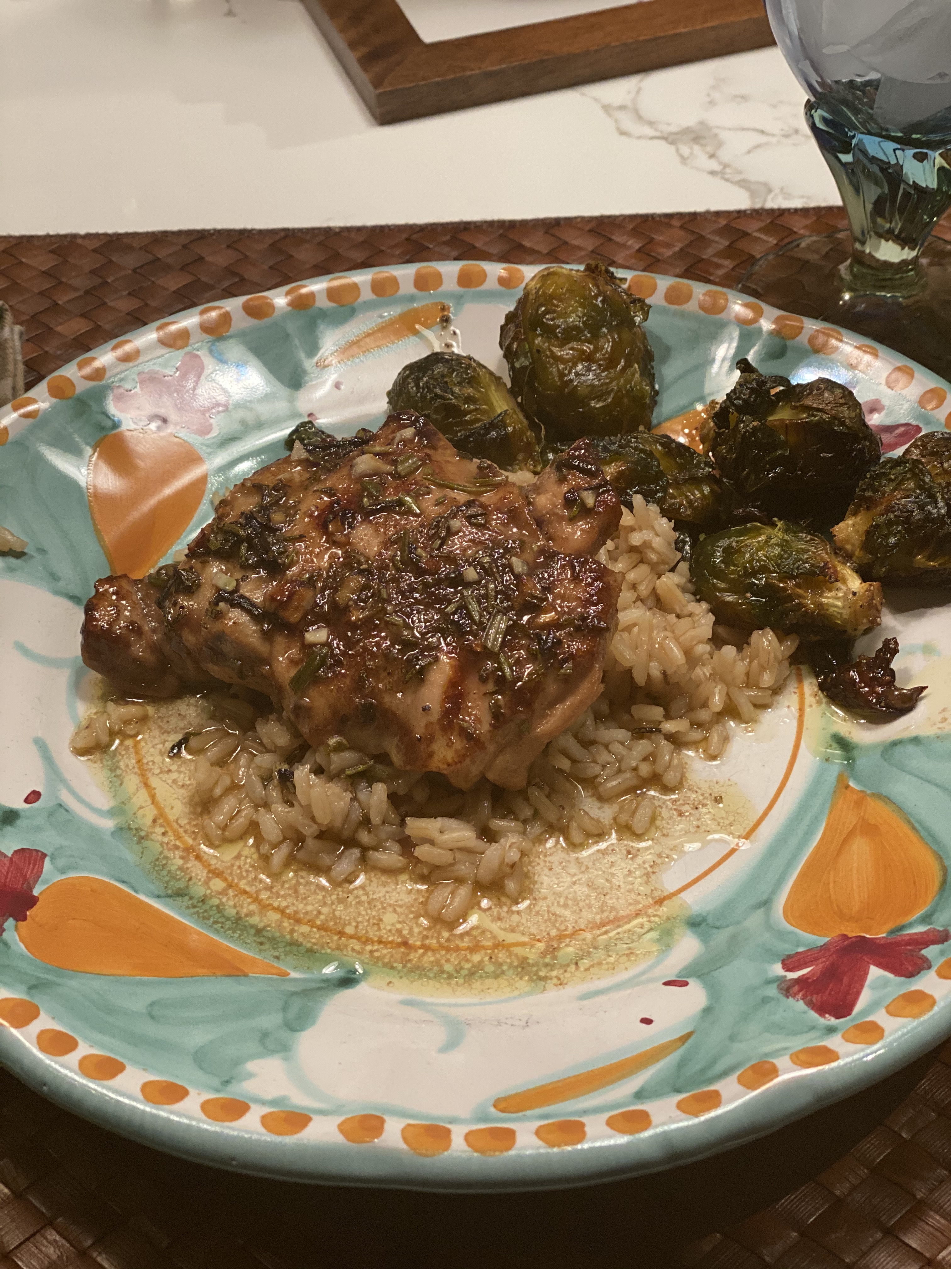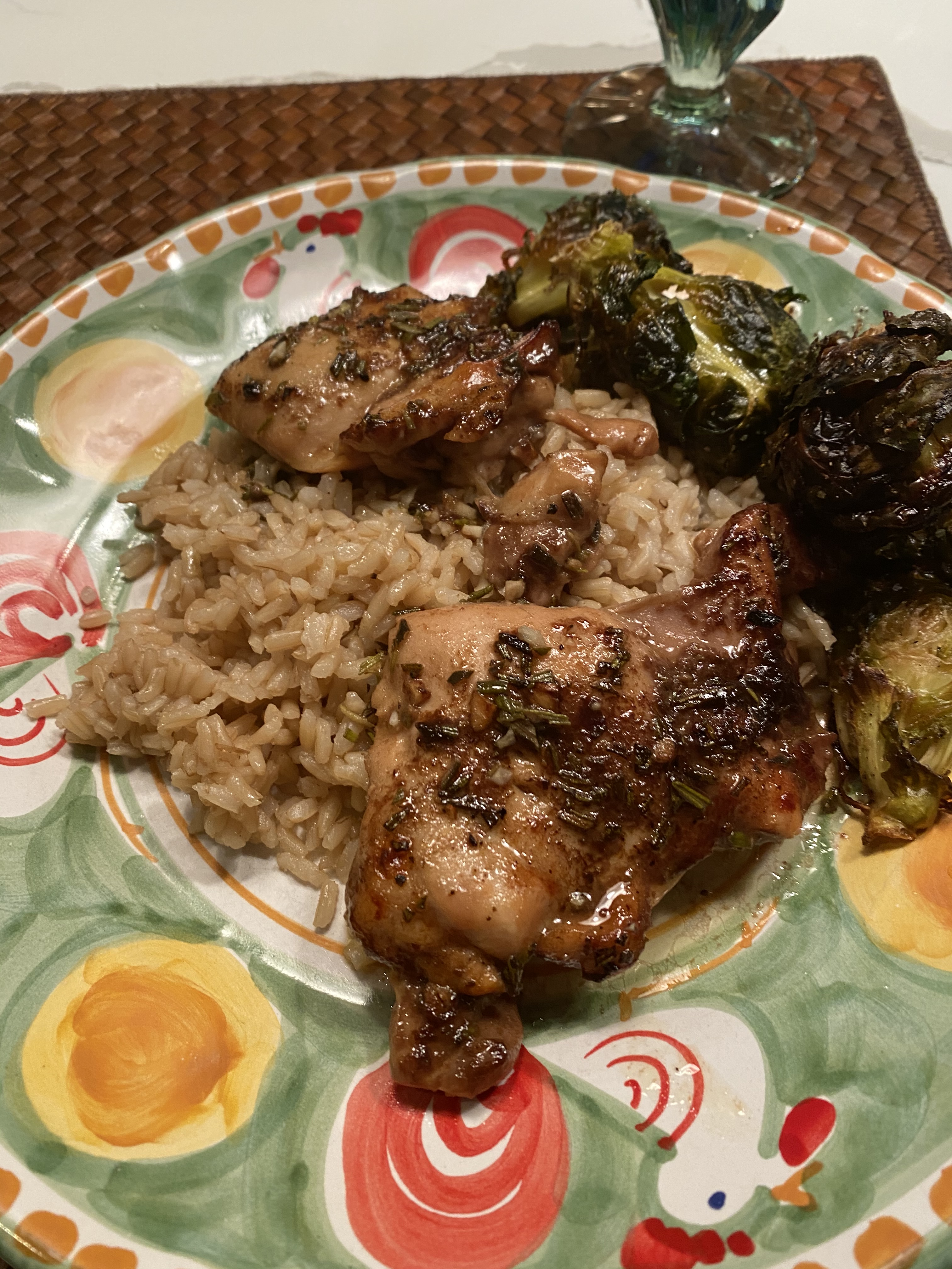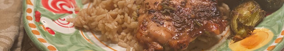 I made this for dinner the other night and I have to say it was very delicious. I used boneless skinless chicken thighs, of course you can use any cut of chicken you’d like. All I needed was the chicken and the fresh rosemary. I had all the other ingredients on hand. You will need to marinate for about 1/2 hour and cooking time is about an hour, no need to marinate over night which is part of what I loved about this recipe. Balsamic Vinegar and Dijon Mustard and a few other easily obtainable ingredients make this a no fuss recipe. This recipe is for 8 boneless skinless thighs but feel free to double it up, I used about 10 thighs . It would be perfect on the grill as well. I used my oven and I have to say we both loved this recipe. Also great made in the air fryer .