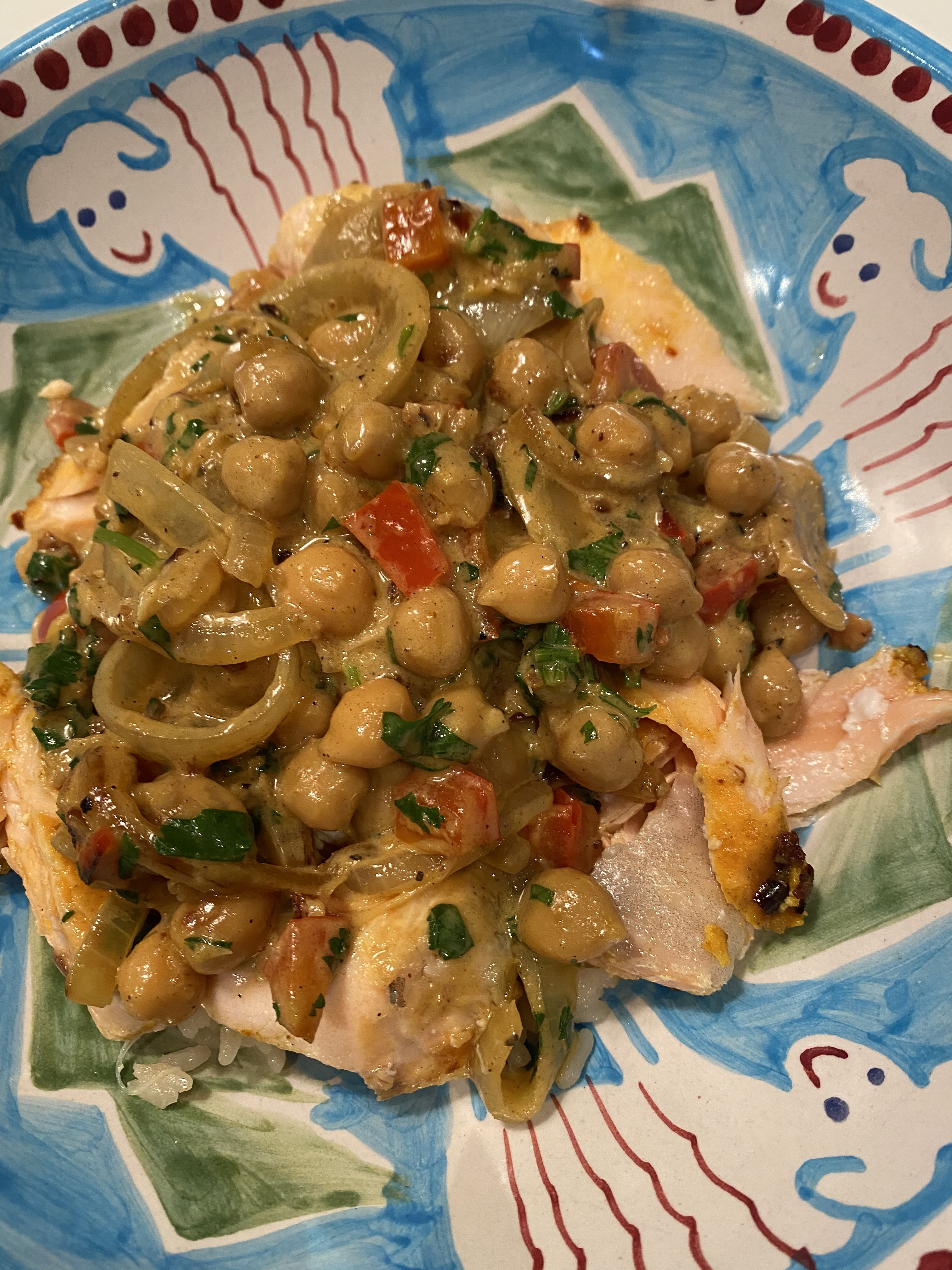 I flaked pieces of the salmon and put over the rice and spooned the curry sauce over it — so delicious.