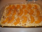 In a separate bowl, combine eggs, syrup from peaches, salt, sugar, margarine, and vanilla. Add farfel and combine well. In a well sprayed 9 x 12 baking dish, pour 1/2 the mixture, then arrange a layer of peaches on top. Add remaining mixture on top, then top with remaining peaches. Sprinkle with just a bit of cinnamon if you’d like. Bake for 1 hour at 350 degrees. Serve hot out of oven, or room temp. It is quite delicious at room temperature, if you don’t have the room in your oven, and it makes for a pretty awesome leftover.