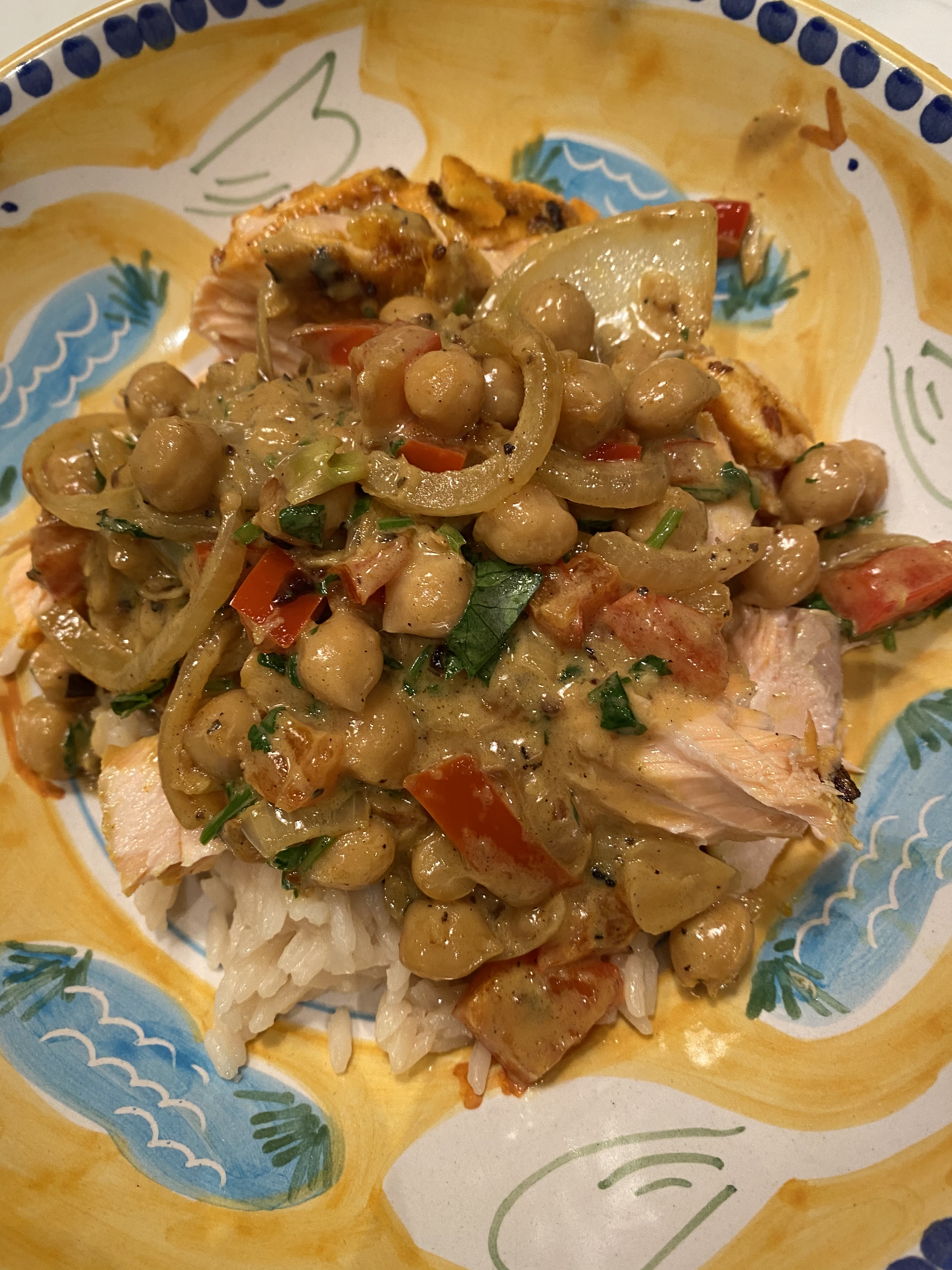 I flaked pieces of the salmon and put over the rice and spooned the curry sauce over it — so delicious.