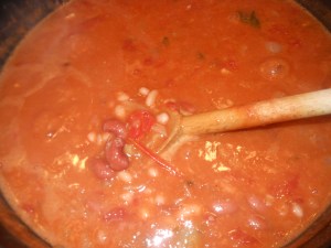 I have been making this soup forever and it’s a most perfect soup to make during the weekend when you have a little time to cook and gather ingredients. I make a big pot and freeze some for later and keep some in the fridge for lunch the next day. This is really just a tomato base soup with beans and pasta. How bad can that be? unless you hate beans and pasta that is. I usually have ingredients in the pantry and it is a wonderful warm experience, with a nice salad this is a perfect meal. I used to only make this with dry beans but in the name of time and taste I used canned beans and have now always made this with canned. I must admit this makes it a whole lot easier and honestly no one knows the difference! It is a wonderful hearty soup halfway between a soup and a pasta no matter how you do the beans!