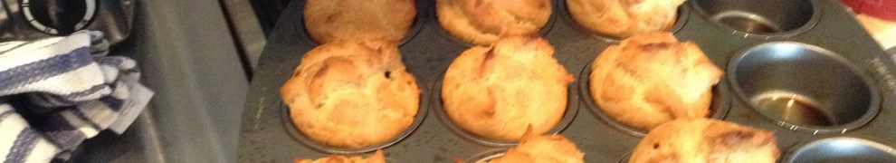 Drop into a well-greased muffin or popover tin using a tablespoon to 3/4 full. I spray with cooking spray . I used a Canola Oil baking spray, or lightly grease pan with canola oil.