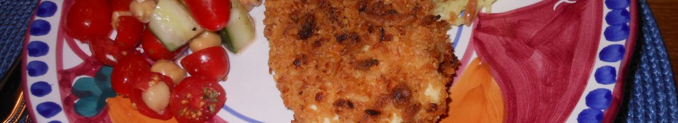 Pat each cutlet dry with paper towels, dip in the egg, then dip in the crushed onion rings. Youwill have to push down on onion rings with a spoon so they adhere. Place on sprayed (Pam) cookie sheet and bake for 20 minutes.