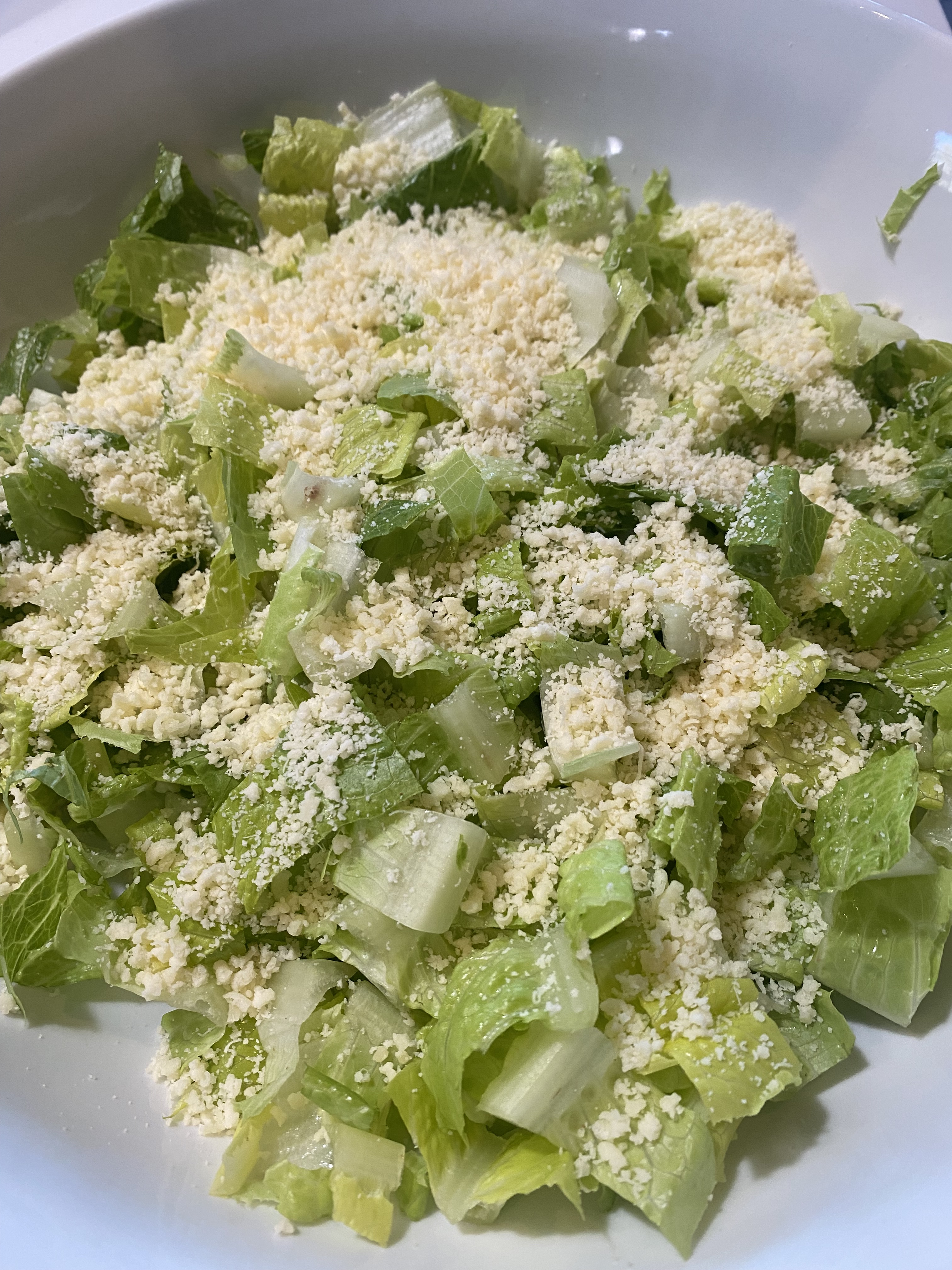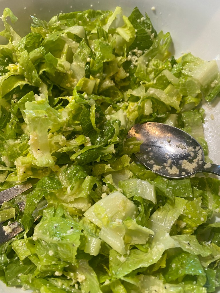Romaine Lettuce– 3 Romaine Hearts are perfect and chop them up and put in a large bowl