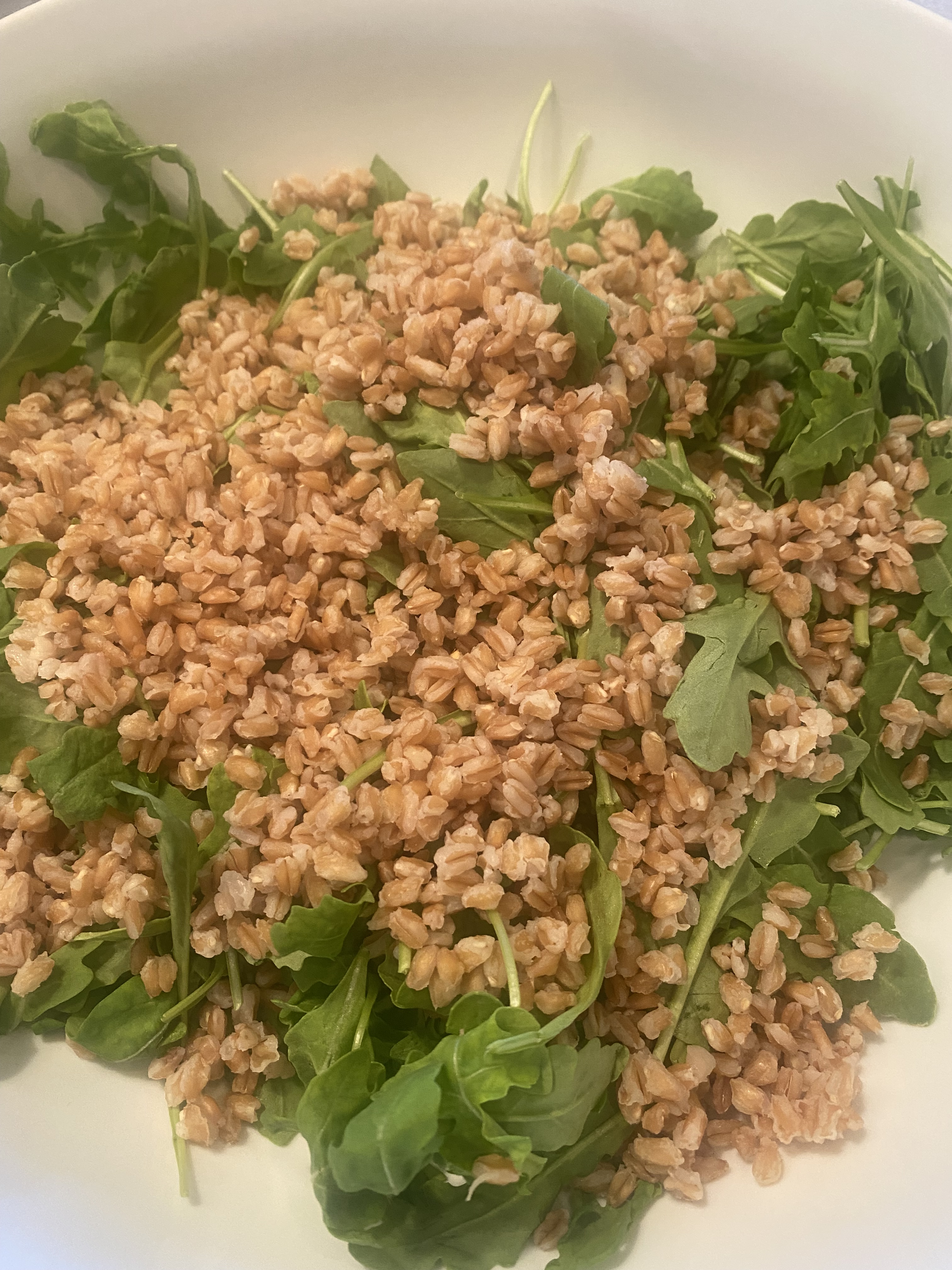 One response to “Summer Salad — Arugula, Farro and Peaches