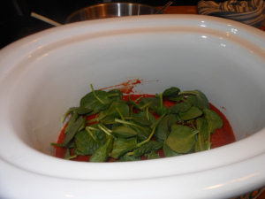 Heat the 2 tablespoons olive oil in a heavy 5 1/2 quart. pot. ( Le Creuset again) heat over medium heat. When oil is hot add the onions, celery , and carrot (Mirepoix mixture). Saute the vegetables until the onion is translucent, about 5 minutes. Season with salt and pepper, to taste. You will taste again towards the end, so if you want to hold off on this step you can. Stir in the tomatoes with their juices, chicken broth, tomato paste, bay leaf and thyme. Then add the chicken breasts , press to submerge in the sauce.
