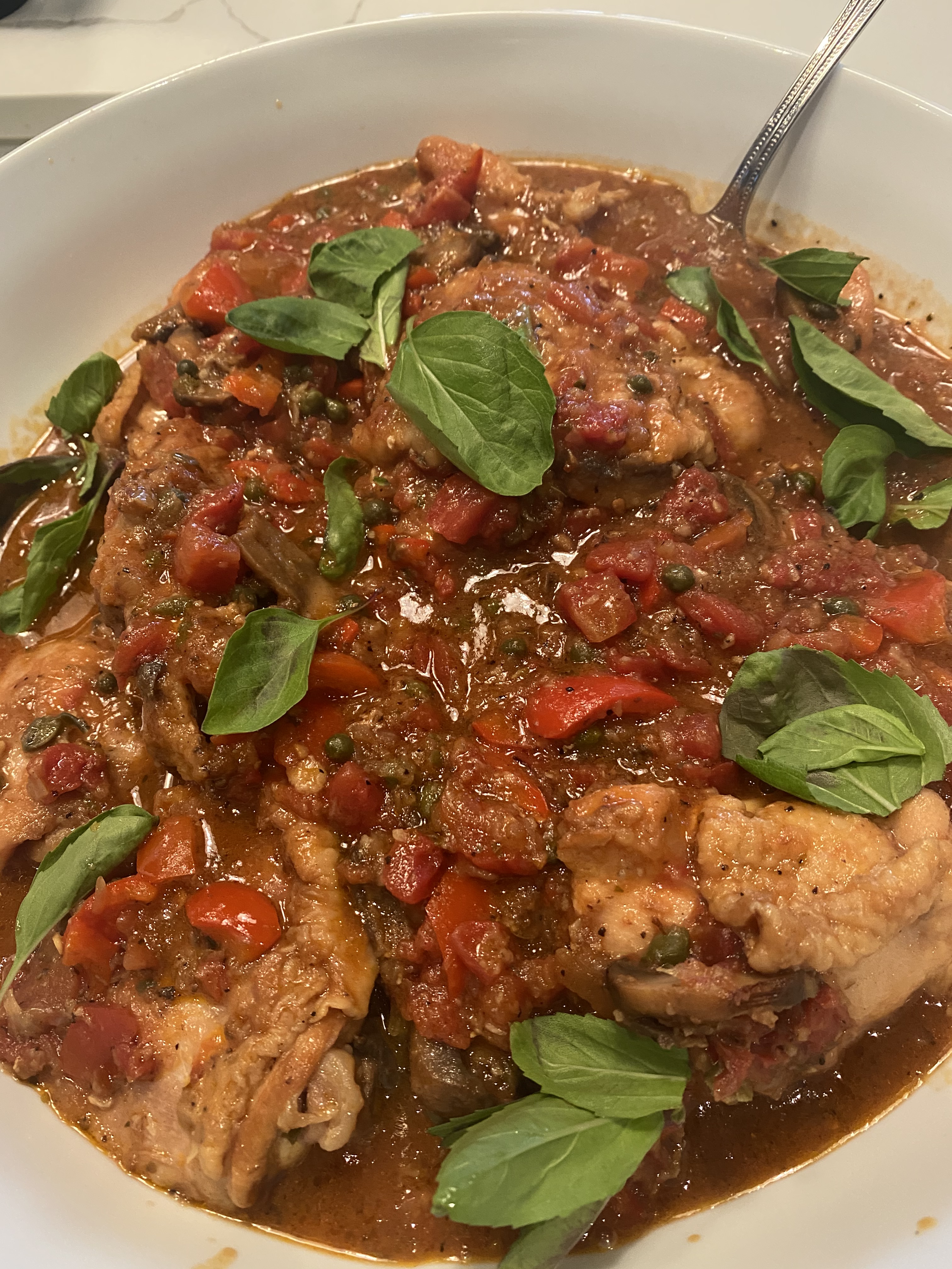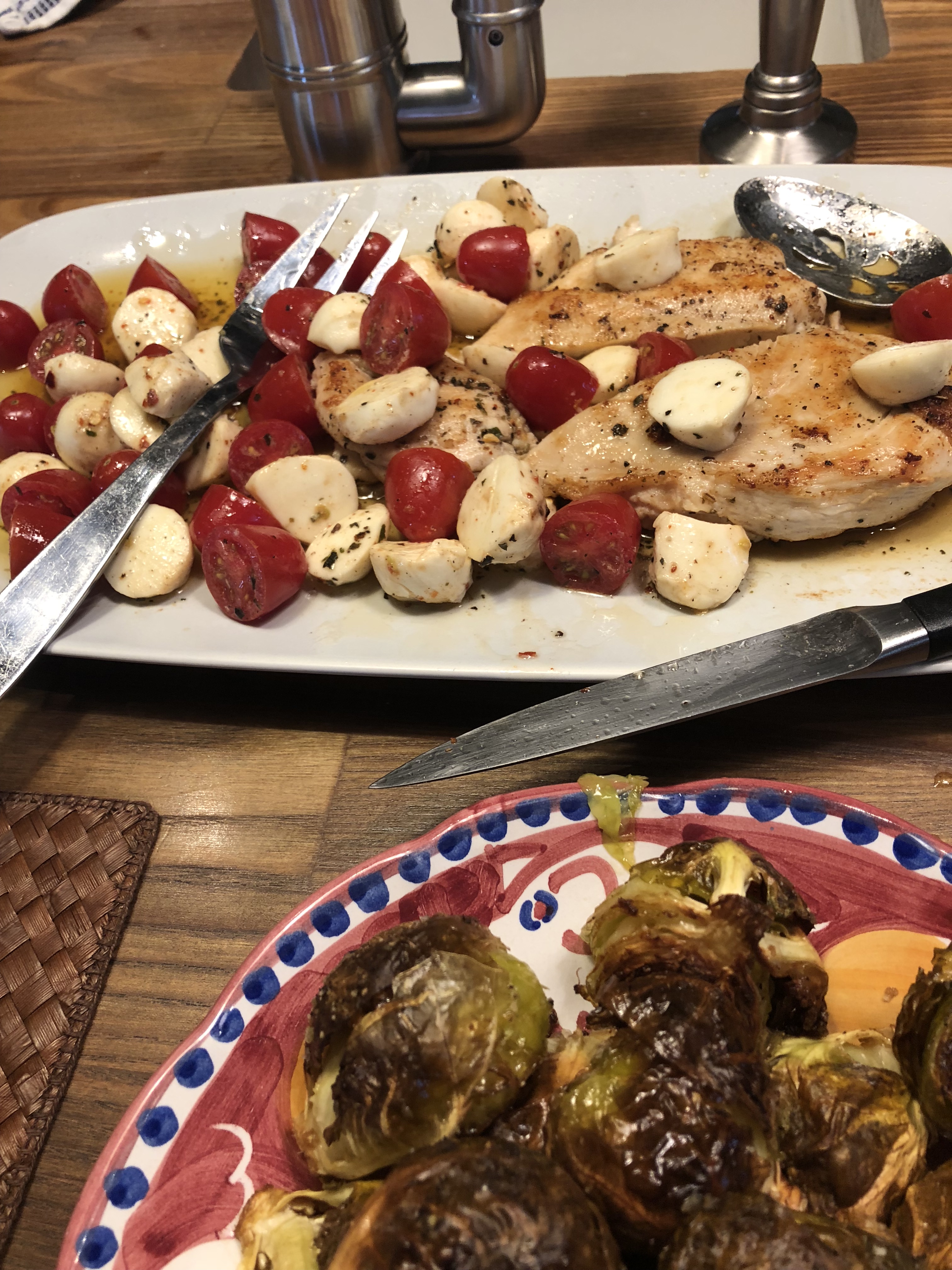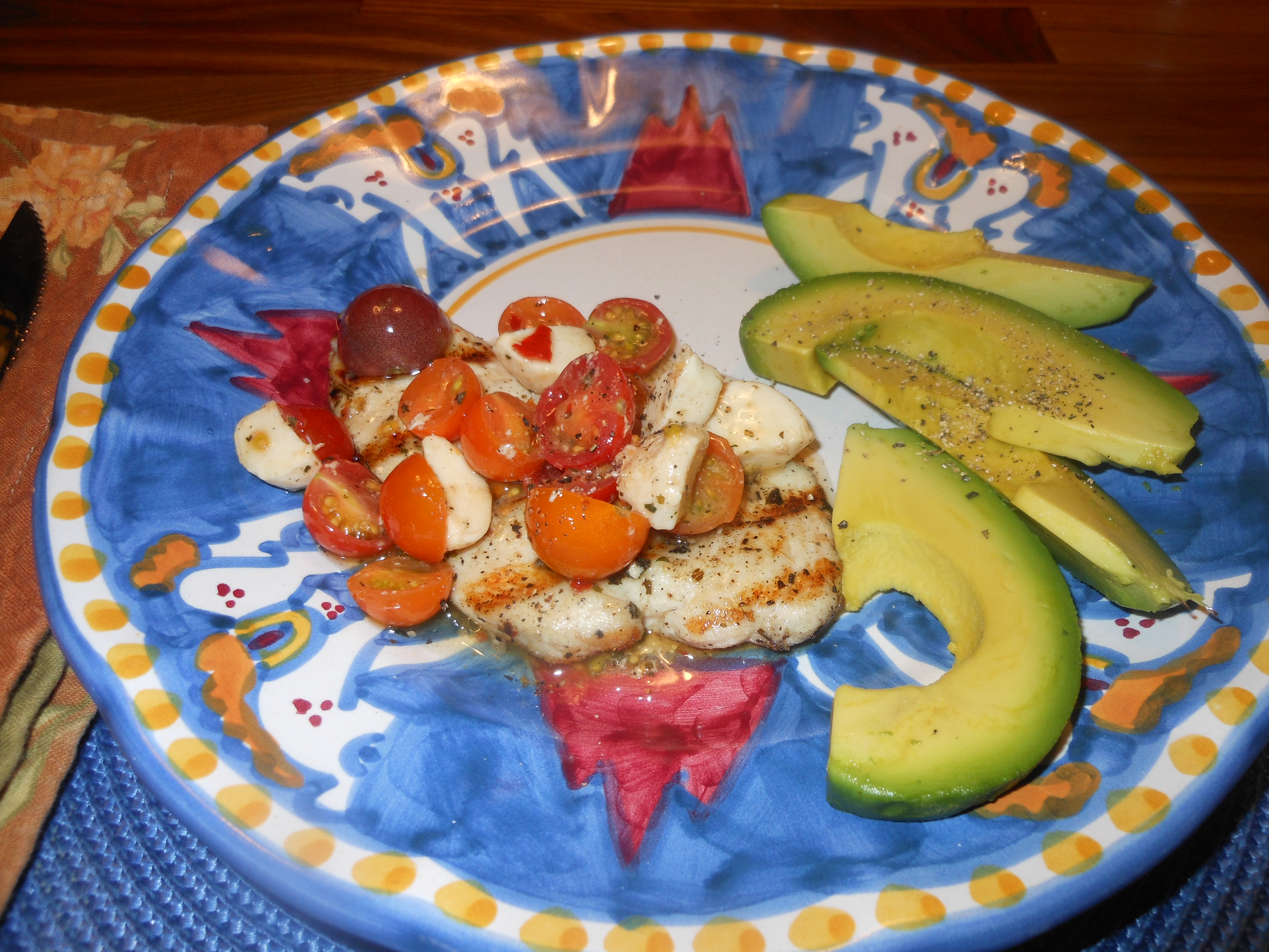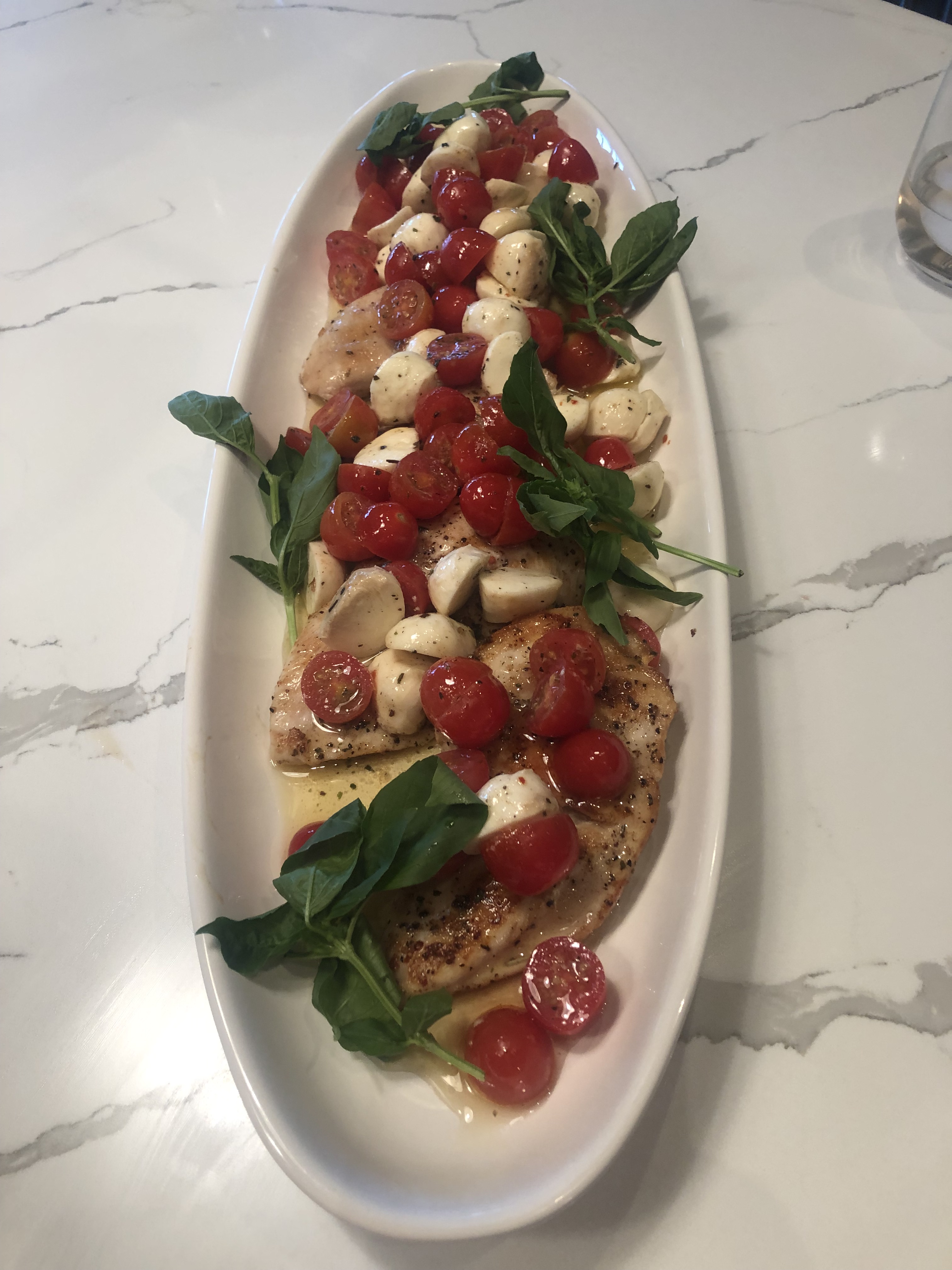 This is a fresh take on a heavier more classic Chicken Parmigiana. I mean don’t get me wrong sometimes there’s nothing better than the classic version but other times you just want to lighten it up. I had thin chicken breasts, tomatoes and I had bought a ball of fresh mozzarella. Didn’t want to fry up the cutlets and was sort of craving a parmigiana type of meal. This is what I did last night.